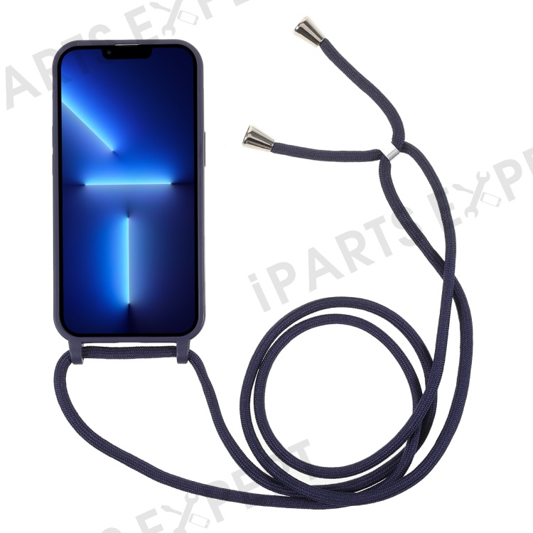 Cell Phone TPU Case Protector with Adjustable Lanyard for iPhone 13 Pro Max 6.7 inch - Dark Blue