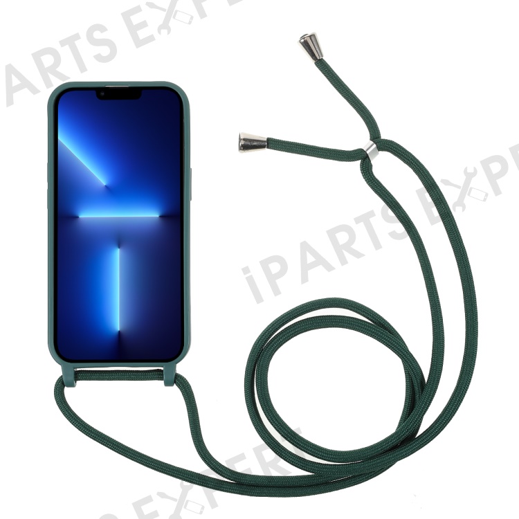 Cell Phone TPU Case Protector with Adjustable Lanyard for iPhone 13 Pro Max 6.7 inch - Green