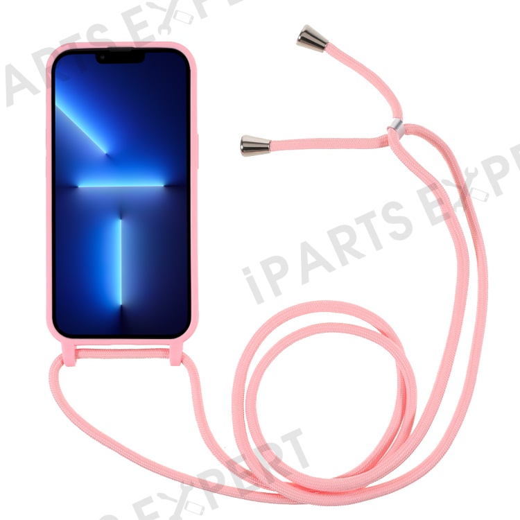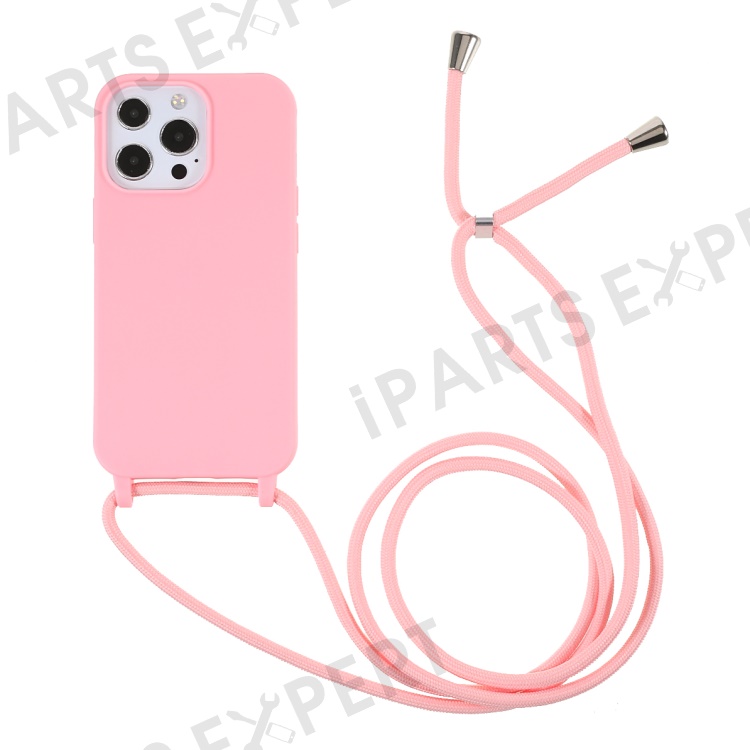 Cell Phone TPU Case Protector with Adjustable Lanyard for iPhone 13 Pro Max 6.7 inch - Light Pink