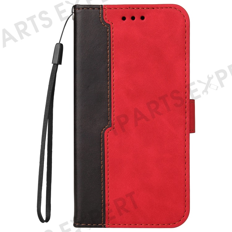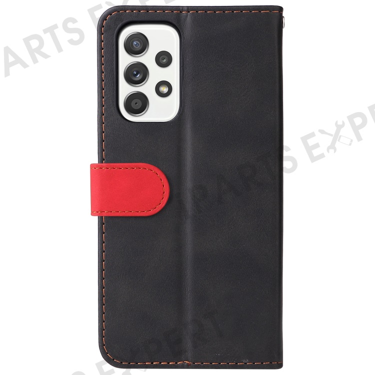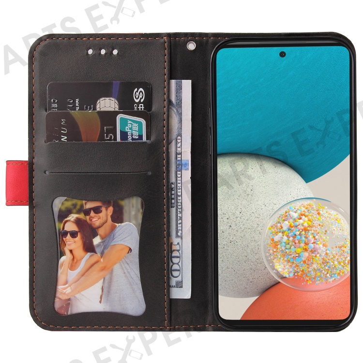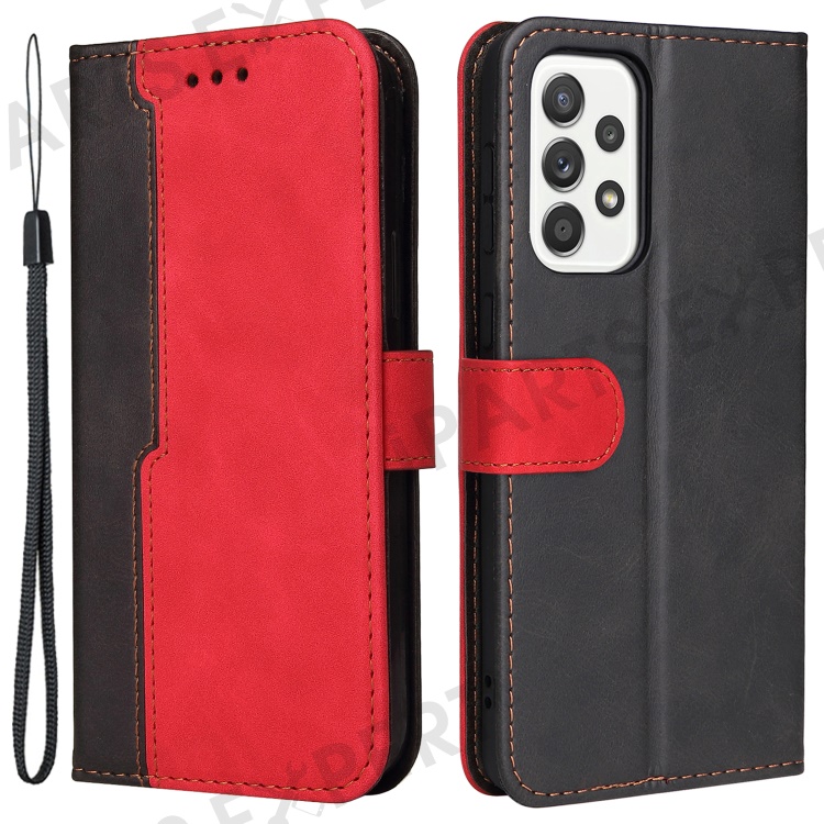 Color Splicing Stand Wallet Function PU Leather Case Phone Cover with Wrist Strap for Samsung Galaxy A53 5G - Red