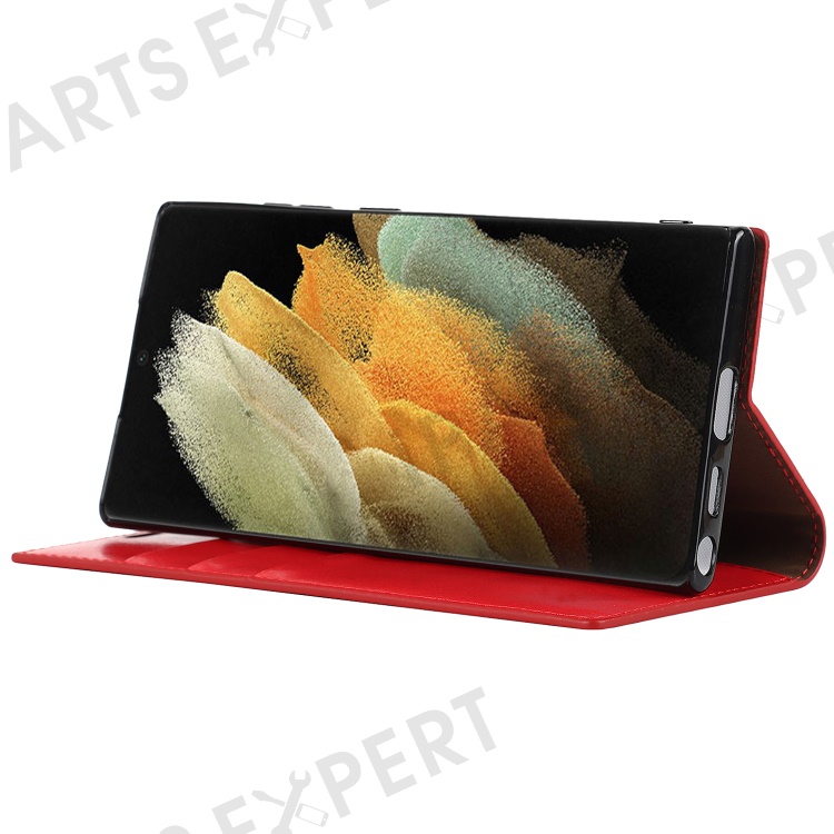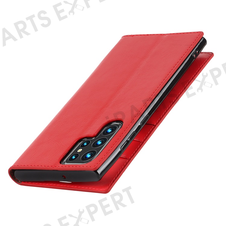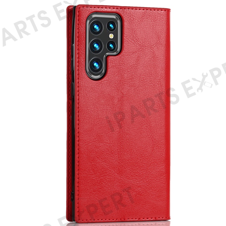 For Samsung Galaxy S22 Ultra 5G Crazy Horse Texture Genuine Leather + TPU Phone Case Cover with Stand Wallet - Red