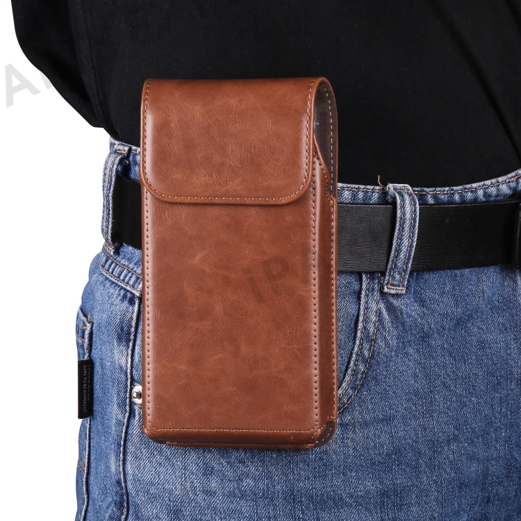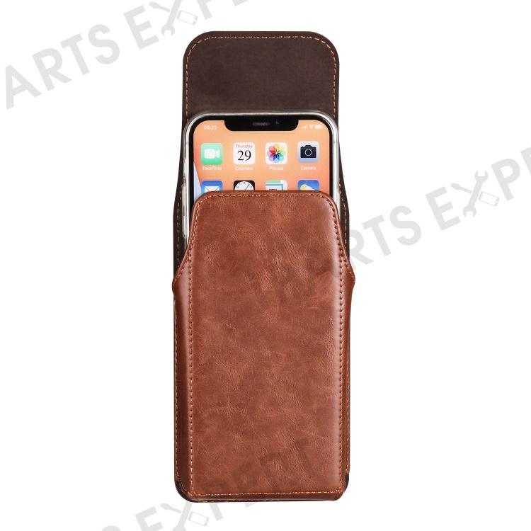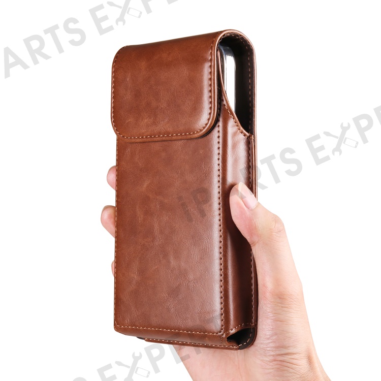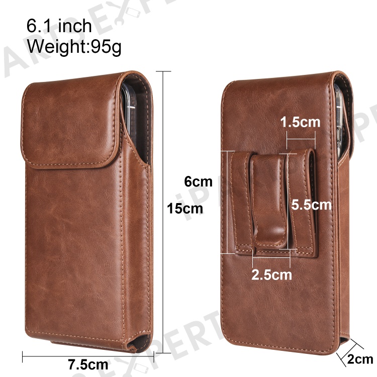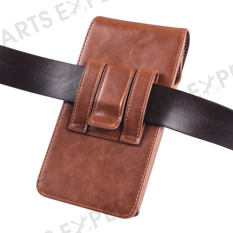 Crazy Horse Texture PU Leather Wasit Phone Bag for 6.1" Cell Phone Universal Belt Pouch with Back Clip - Brown