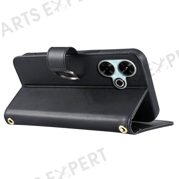 Crossbody Leather Case for Xiaomi Redmi 13 5G / 4G / Poco M6 Plus 5G / Poco M6 4G / Redmi Note 13R 5G Rhombus Mobile Cover - Black