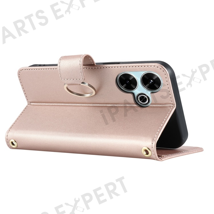 Crossbody Leather Case for Xiaomi Redmi 13 5G / 4G / Poco M6 Plus 5G / Poco M6 4G / Redmi Note 13R 5G Rhombus Mobile Cover - Rose Gold