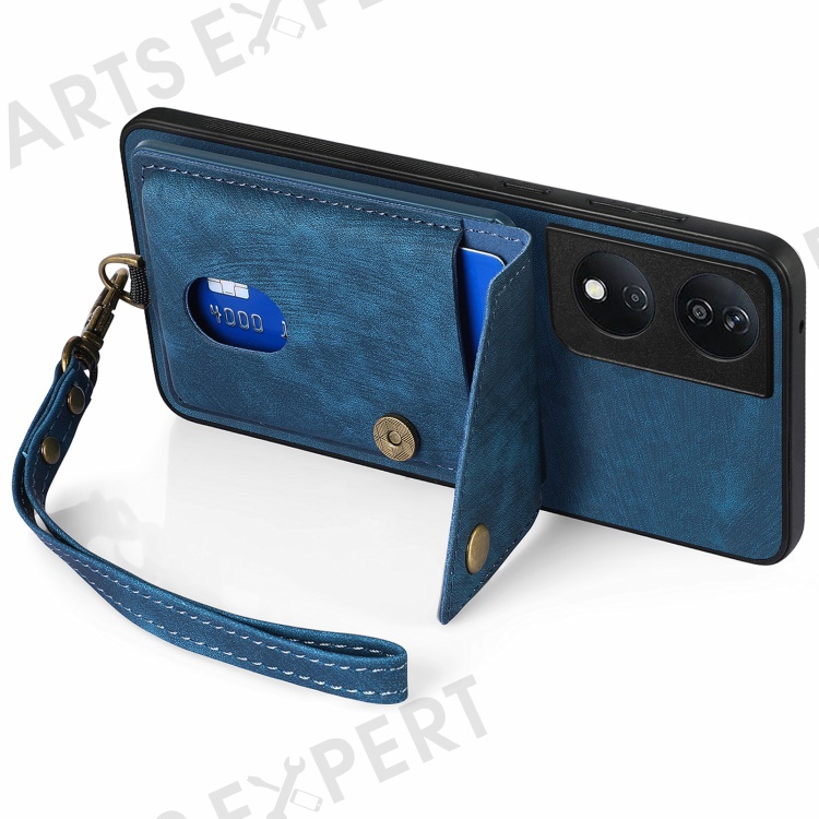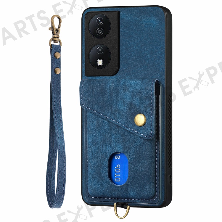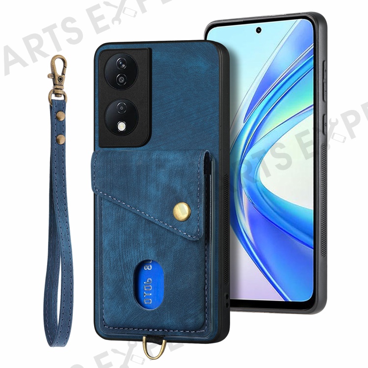 D1 For Honor X7b 4G / 90 Smart Case Leather + TPU Retro Phone Cover Handbag Card Holder - Blue