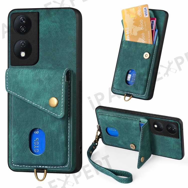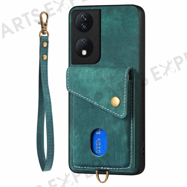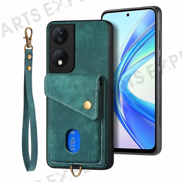 D1 For Honor X7b 4G / 90 Smart Case Leather + TPU Retro Phone Cover Handbag Card Holder - Green
