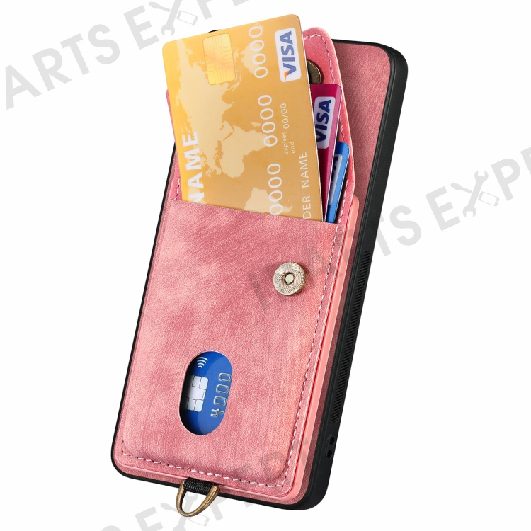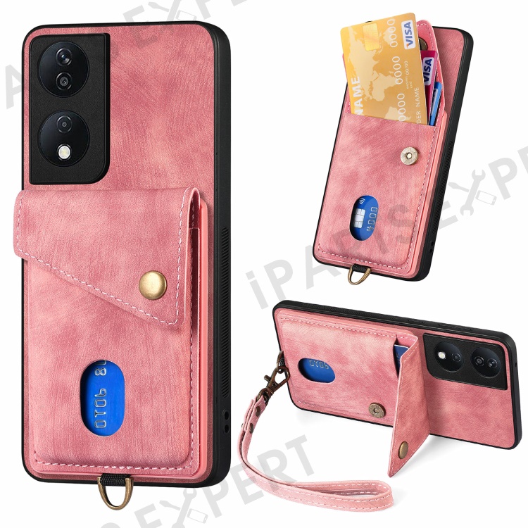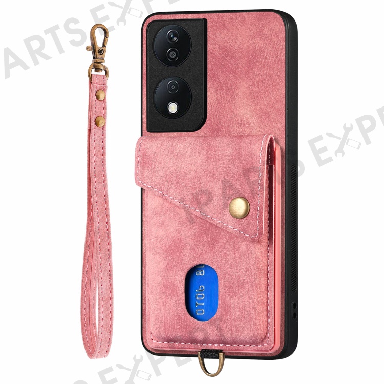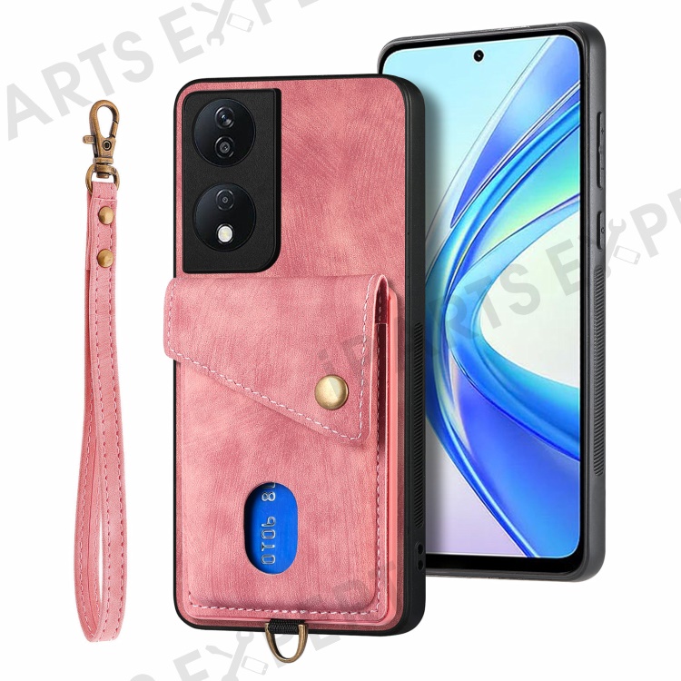 D1 For Honor X7b 4G / 90 Smart Case Leather + TPU Retro Phone Cover Handbag Card Holder - Pink