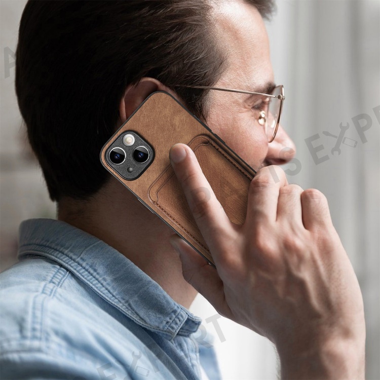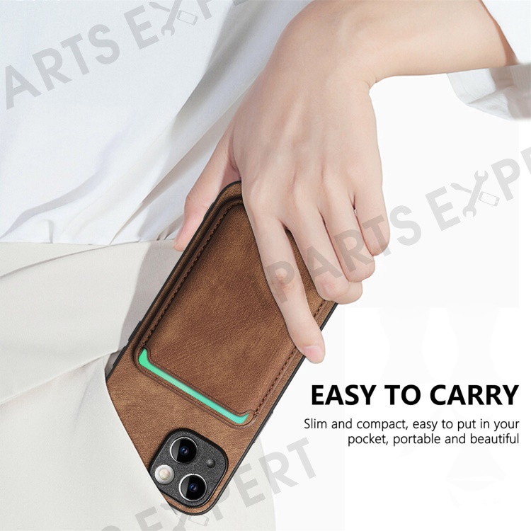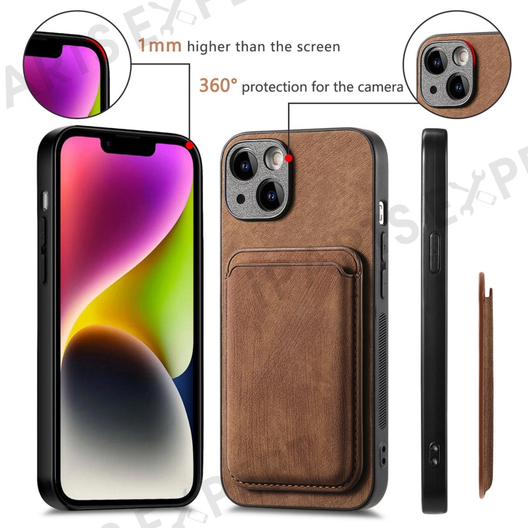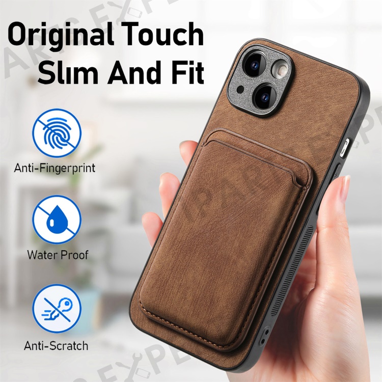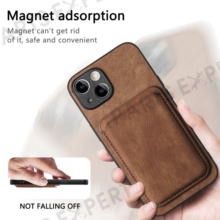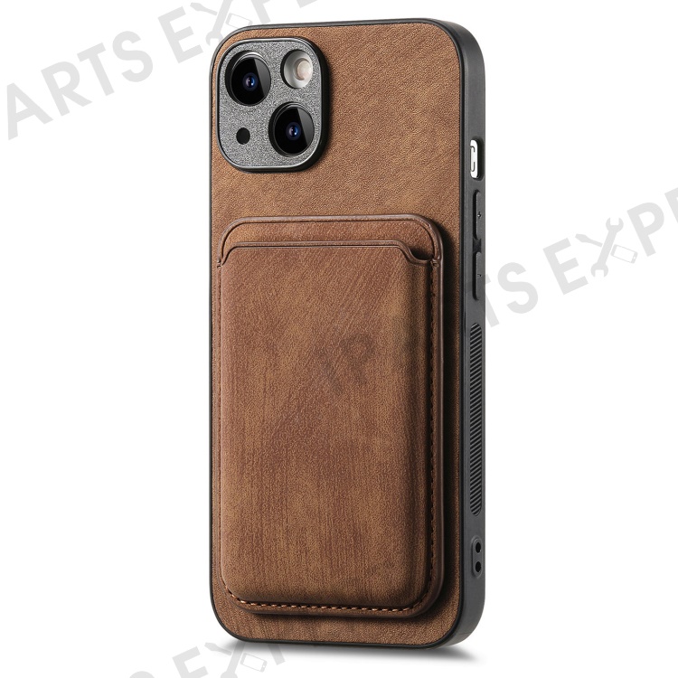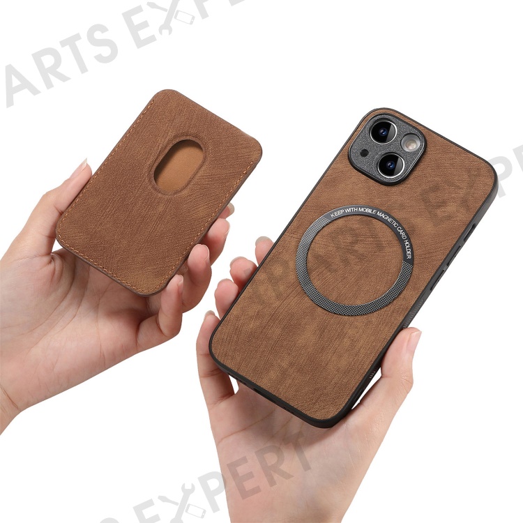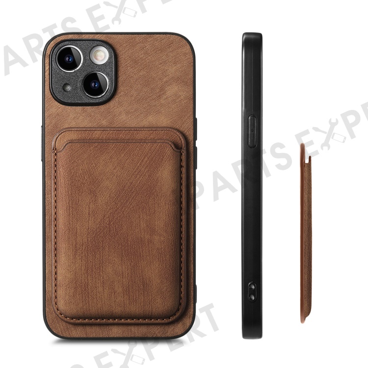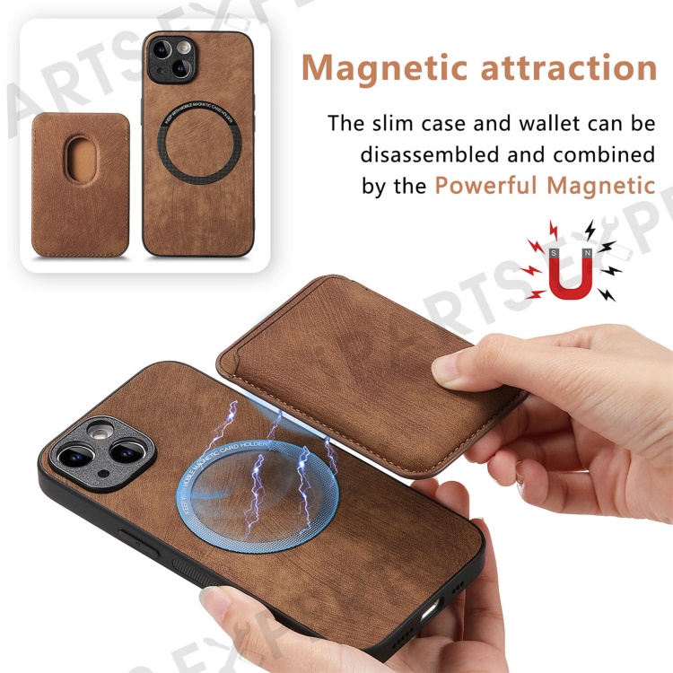 For iPhone 13 Case Compatible with MagSafe Leather Back Cover with Detachable Card Holder - Brown