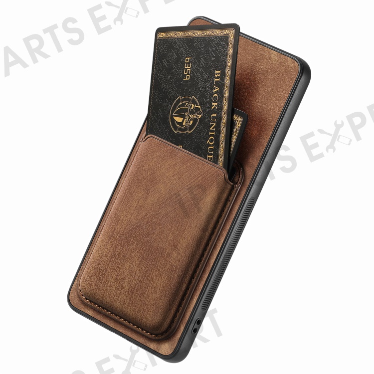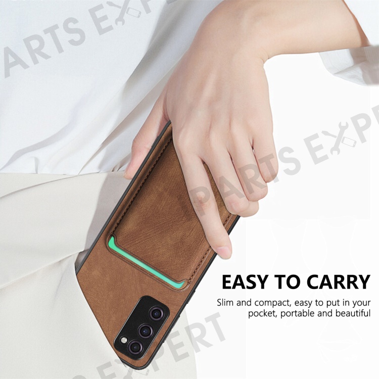For Samsung Galaxy S20 Lite / S20 FE / S20 FE 5G / S20 FE 2022 Magnetic Case Leather Back Cover with Detachable Card Holder - Brown