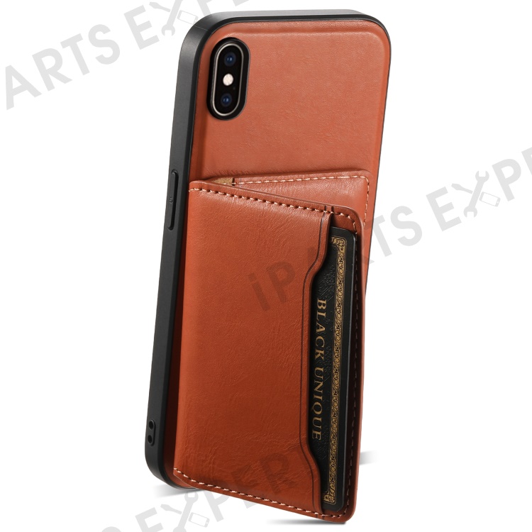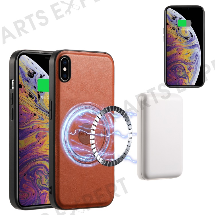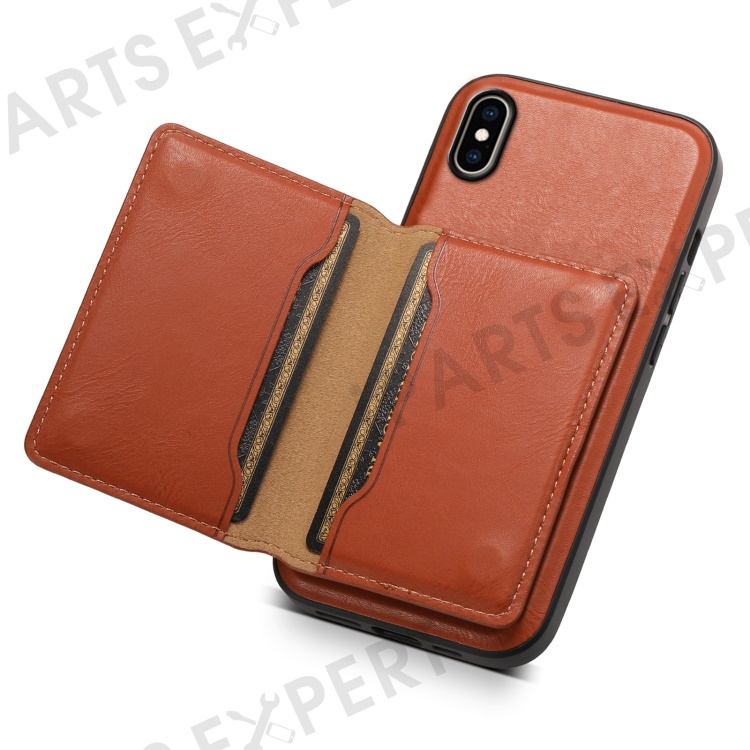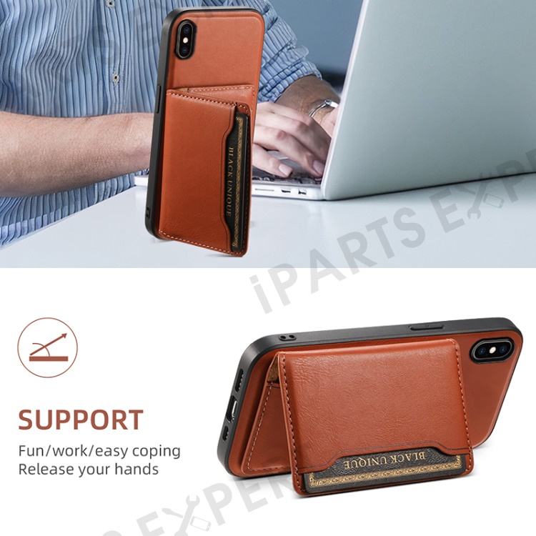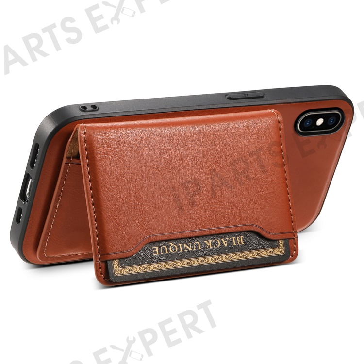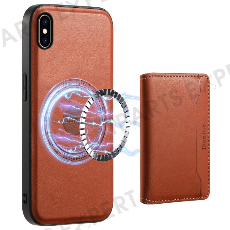 DENIOR For iPhone XS Max 6.5 inch Case Kickstand Cowhide Texture Phone Purse Cover Compatible with MagSafe - Brown