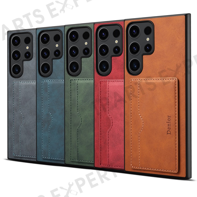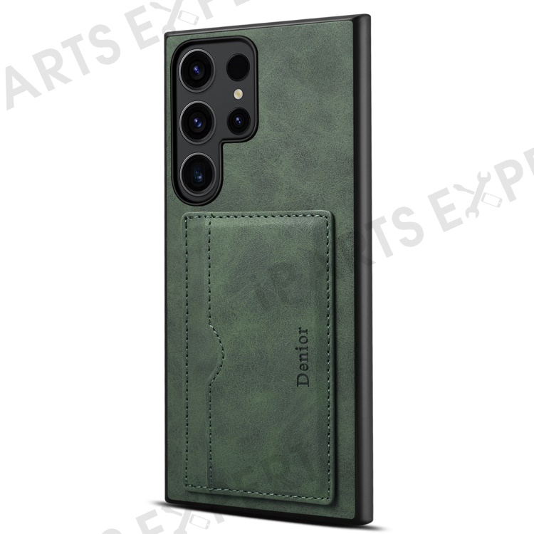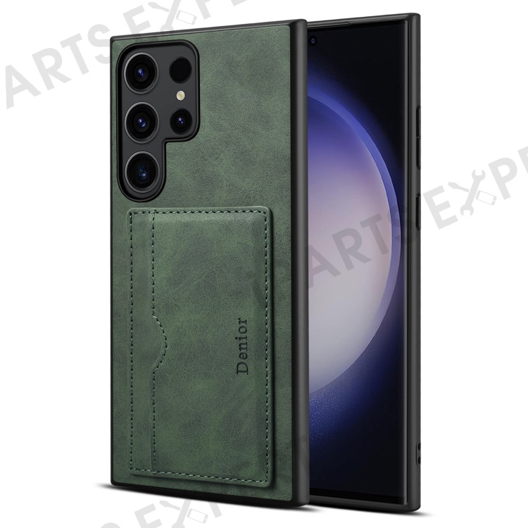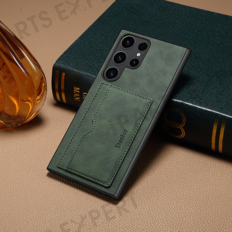 DENIOR For Samsung Galaxy S23 Ultra Magnetic Case Retro Card Holder Kickstand Back Shell - Green