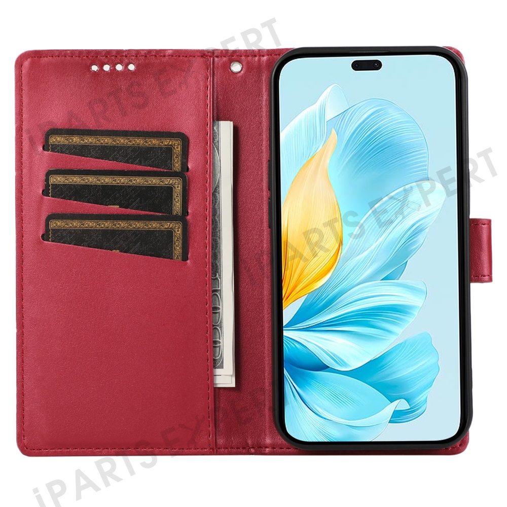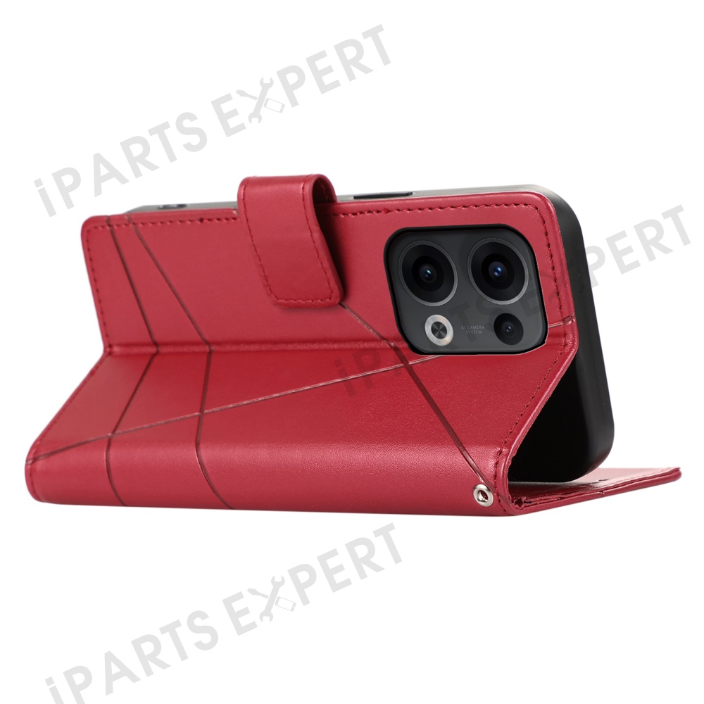 DF-06 For Oppo Reno13 Pro 5G Phone Case Line Imprint Leather Wallet Cover - Red