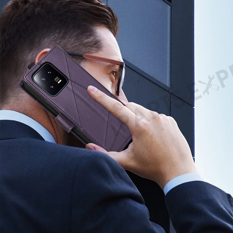 DF-06 For Xiaomi 13 Case Anti-drop Imprinted Wallet Stand PU Leather Phone Cover - Purple