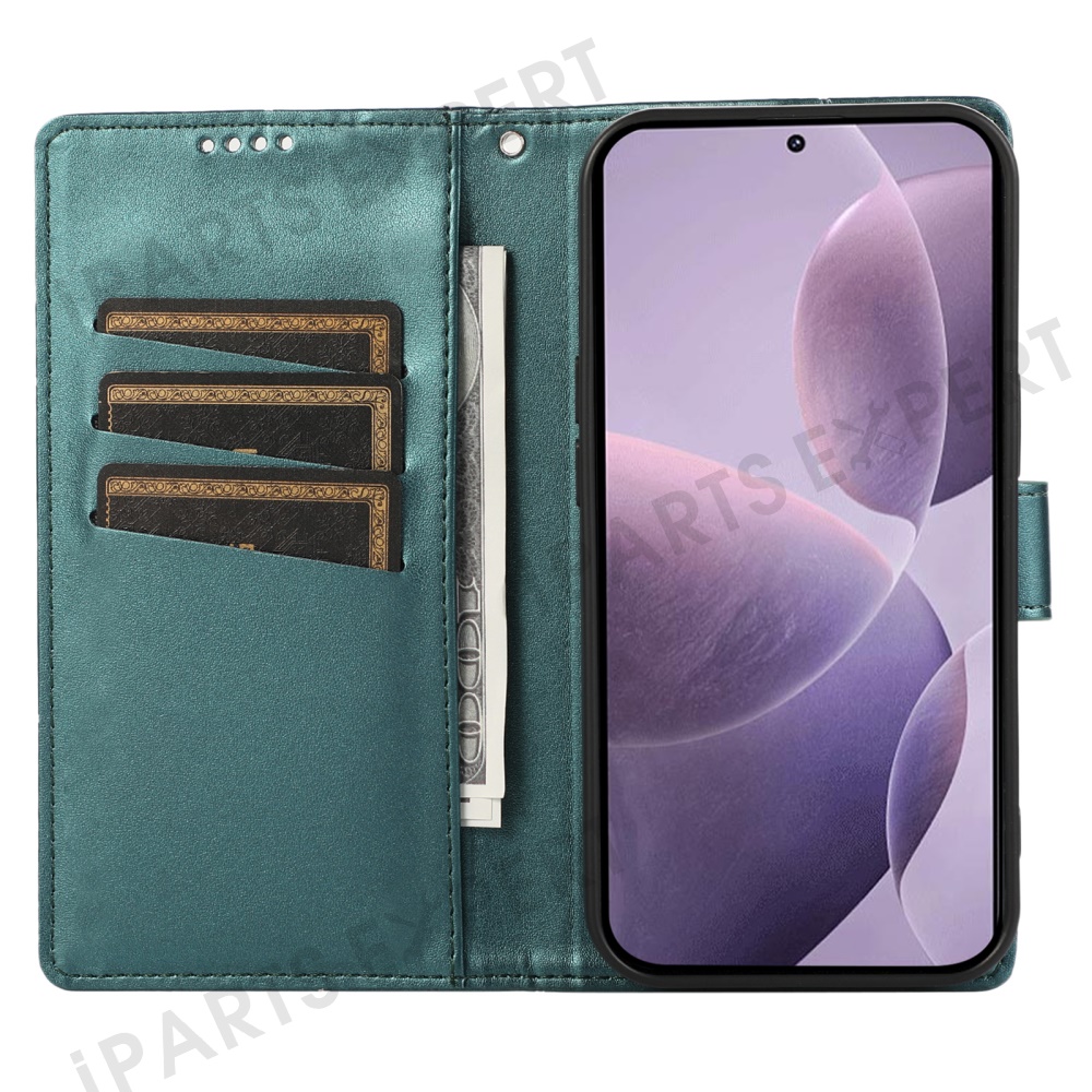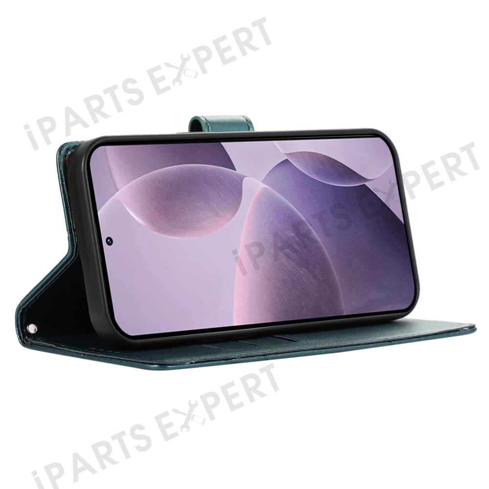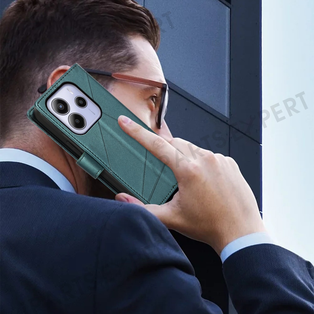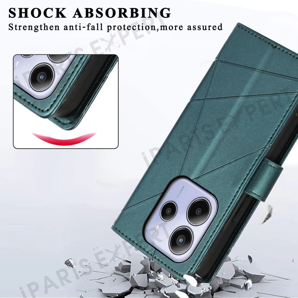 DF-06 For Xiaomi Redmi Note 14 4G (163.25mm) Phone Case Line Imprint Leather Wallet Cover - Green
