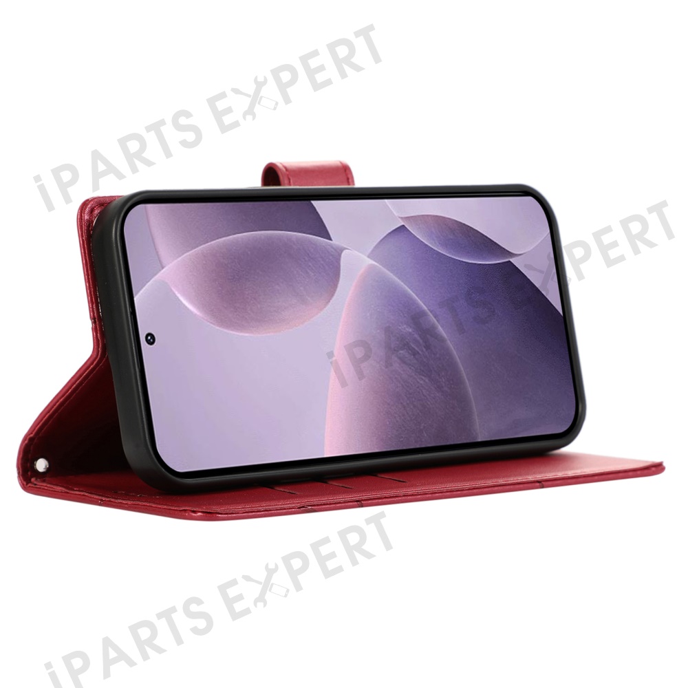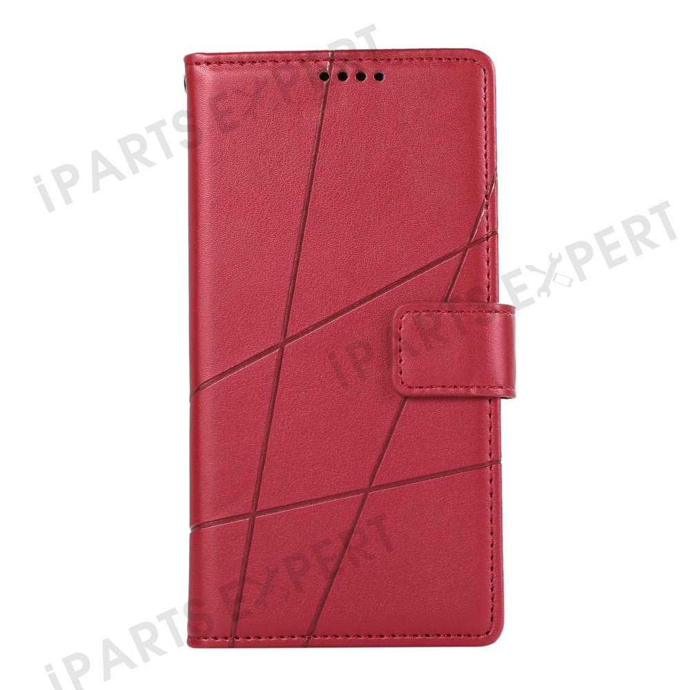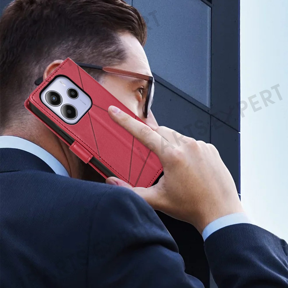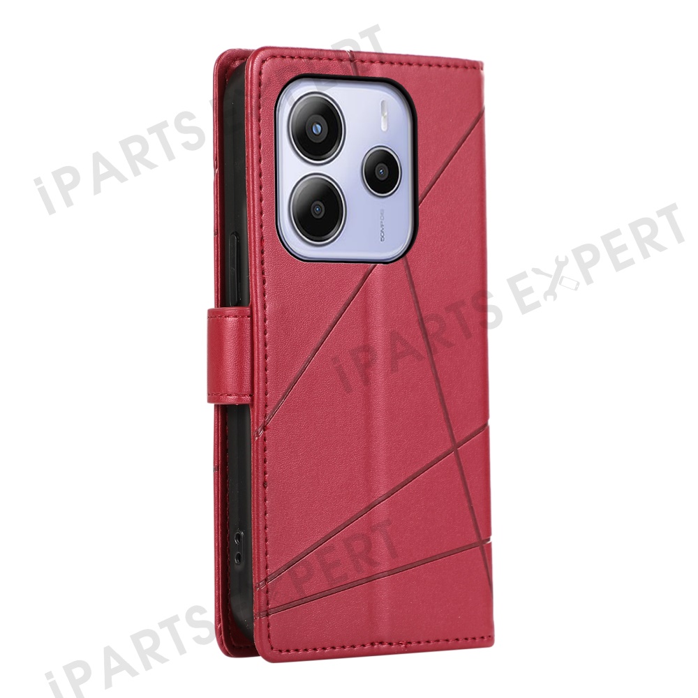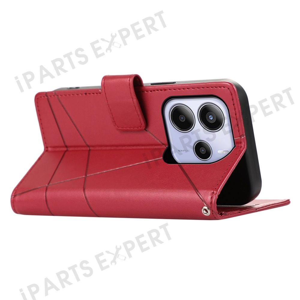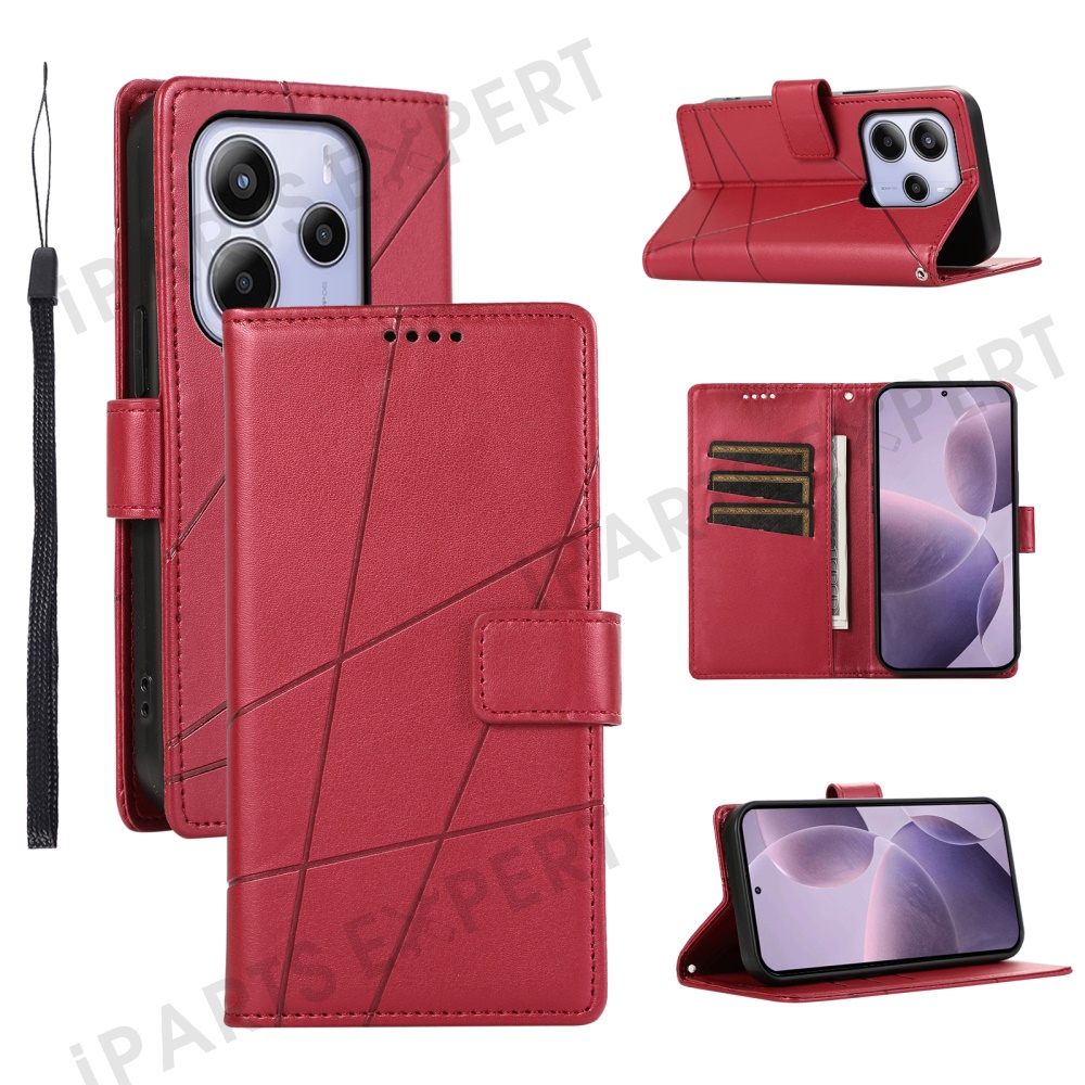 DF-06 For Xiaomi Redmi Note 14 4G (163.25mm) Phone Case Line Imprint Leather Wallet Cover - Red