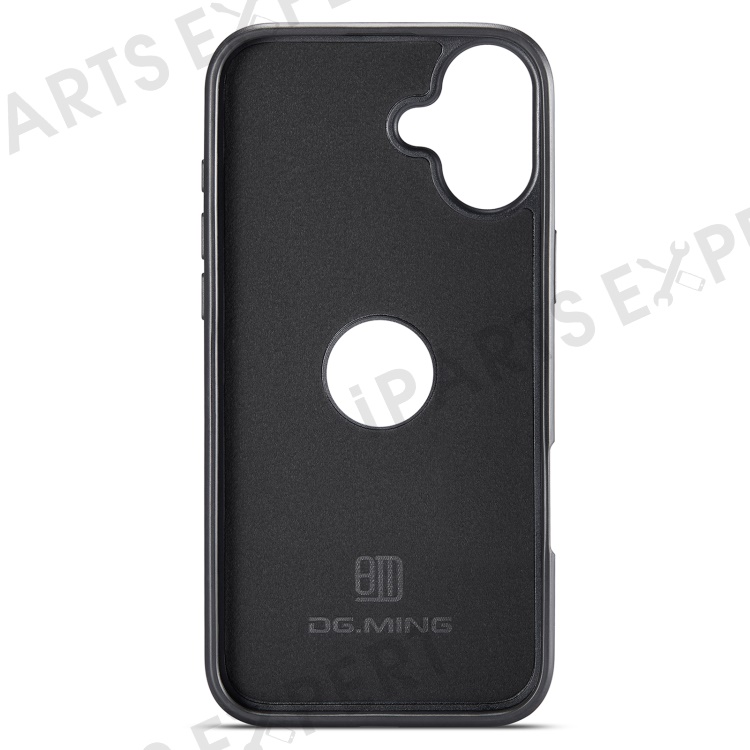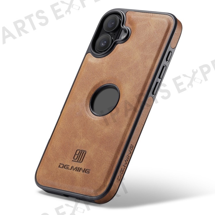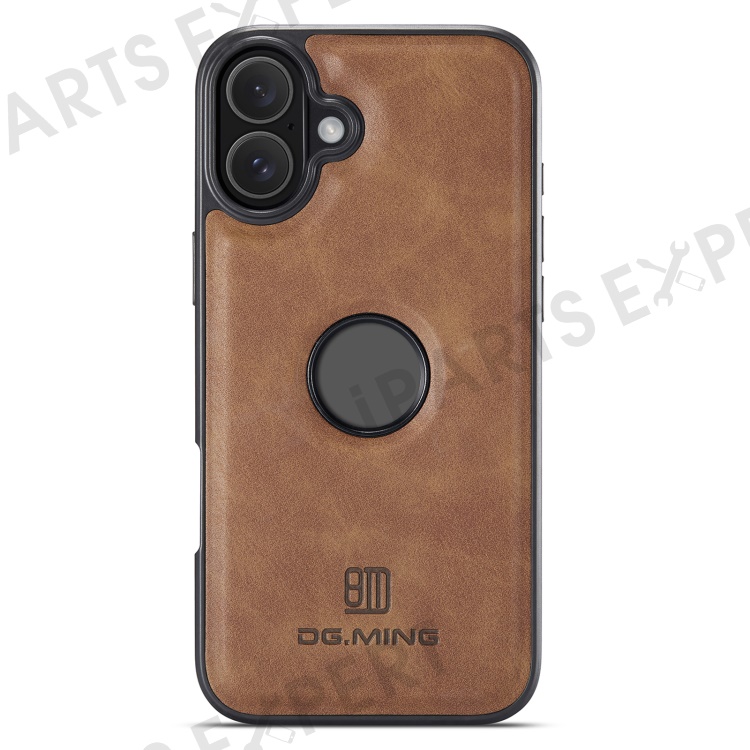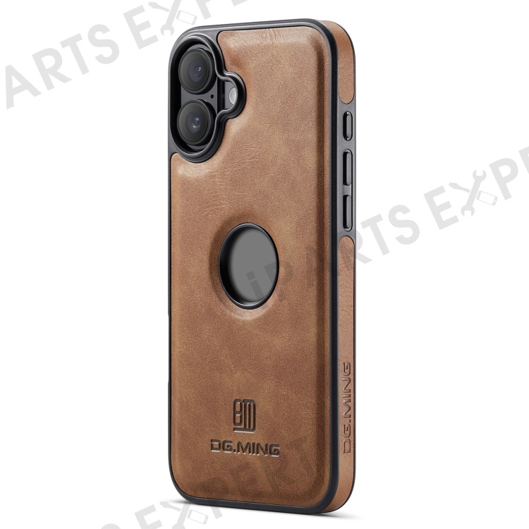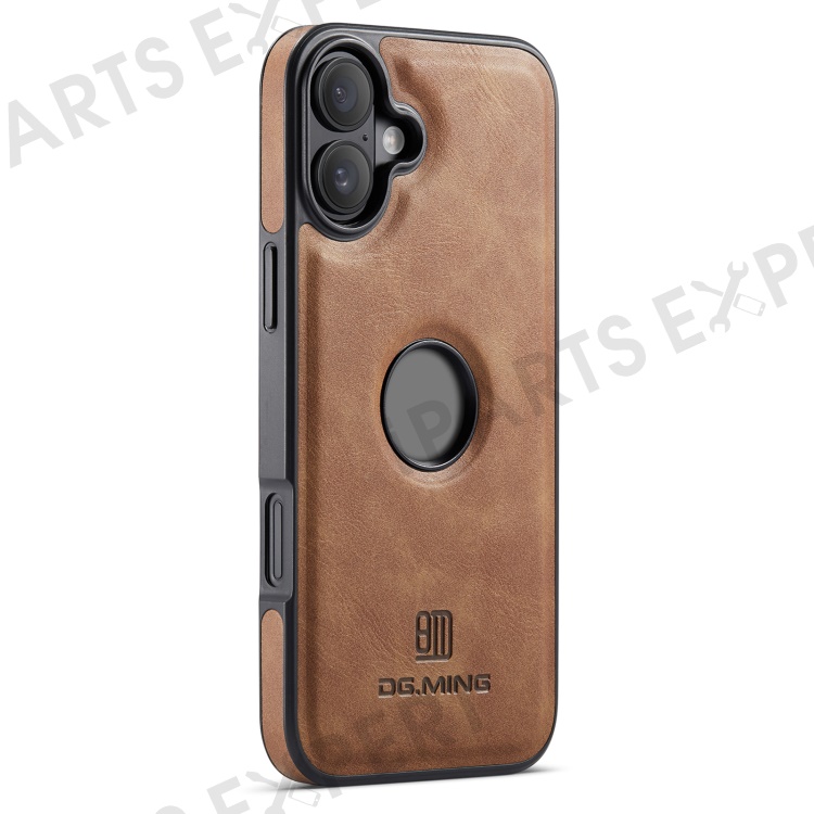 DG.MING For iPhone 16 Case Anti-Drop Leather Coated PC+TPU Phone Back Cover - Brown