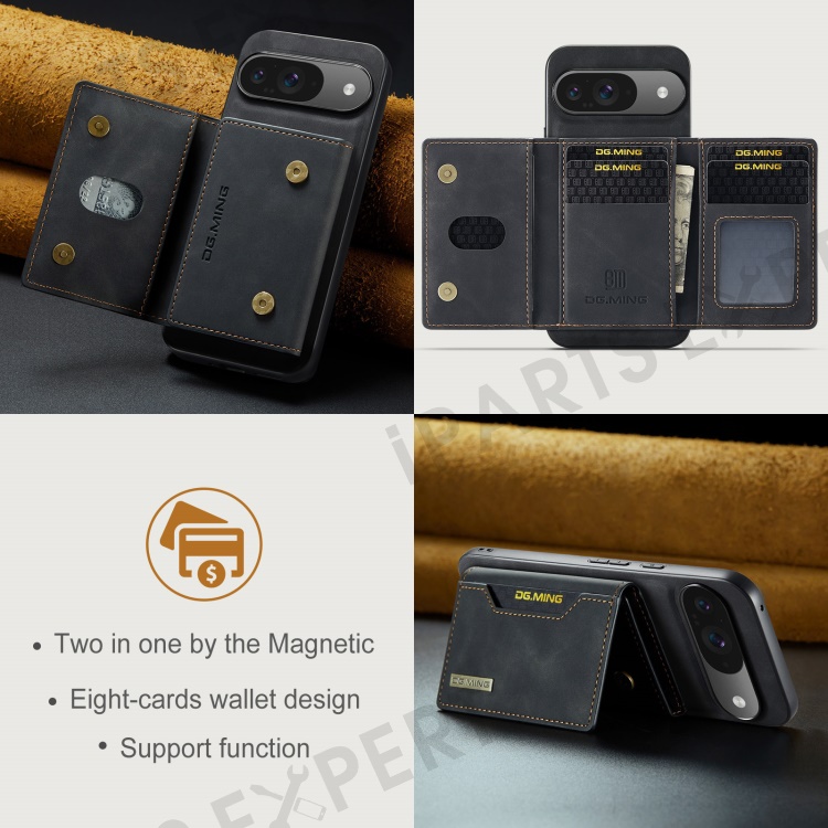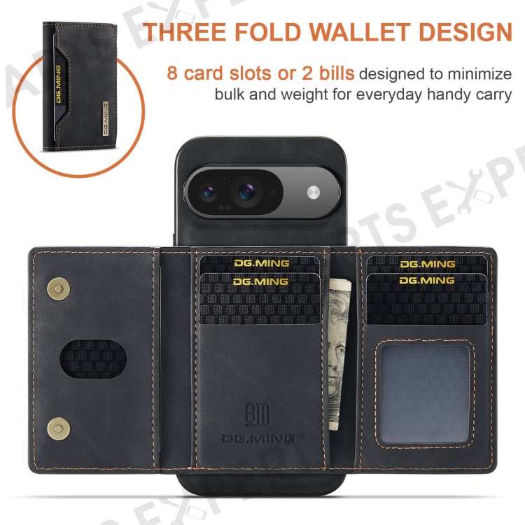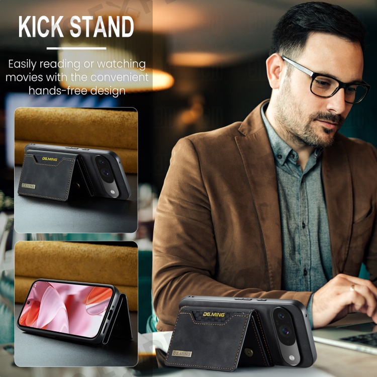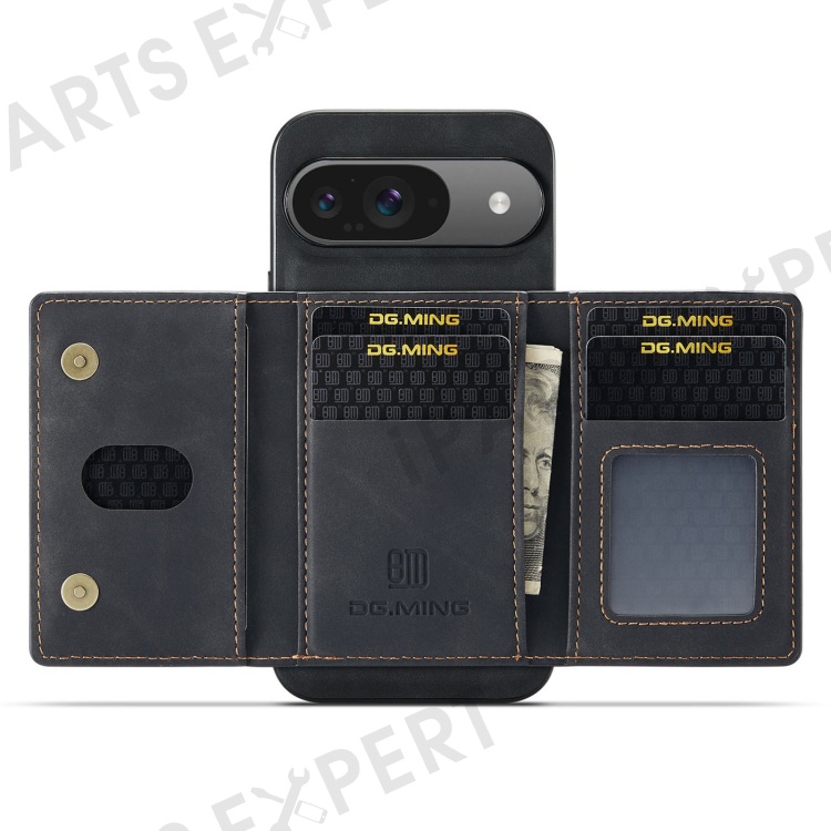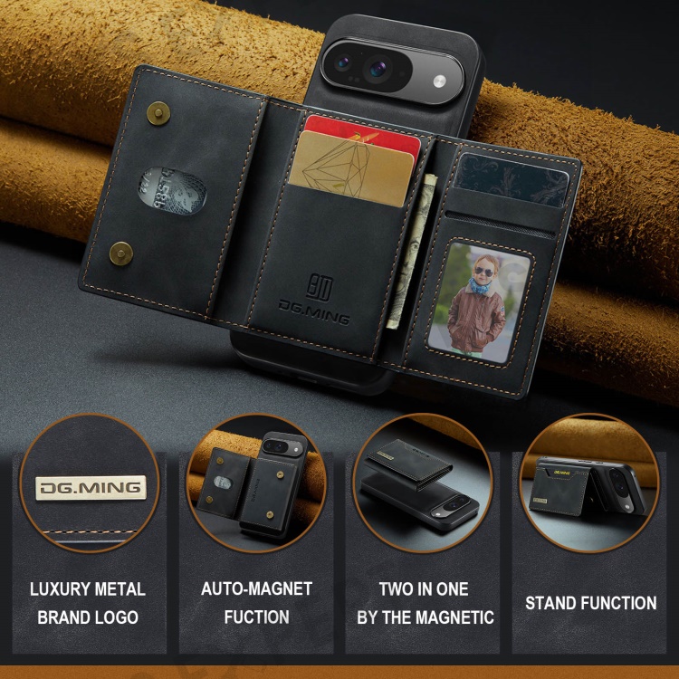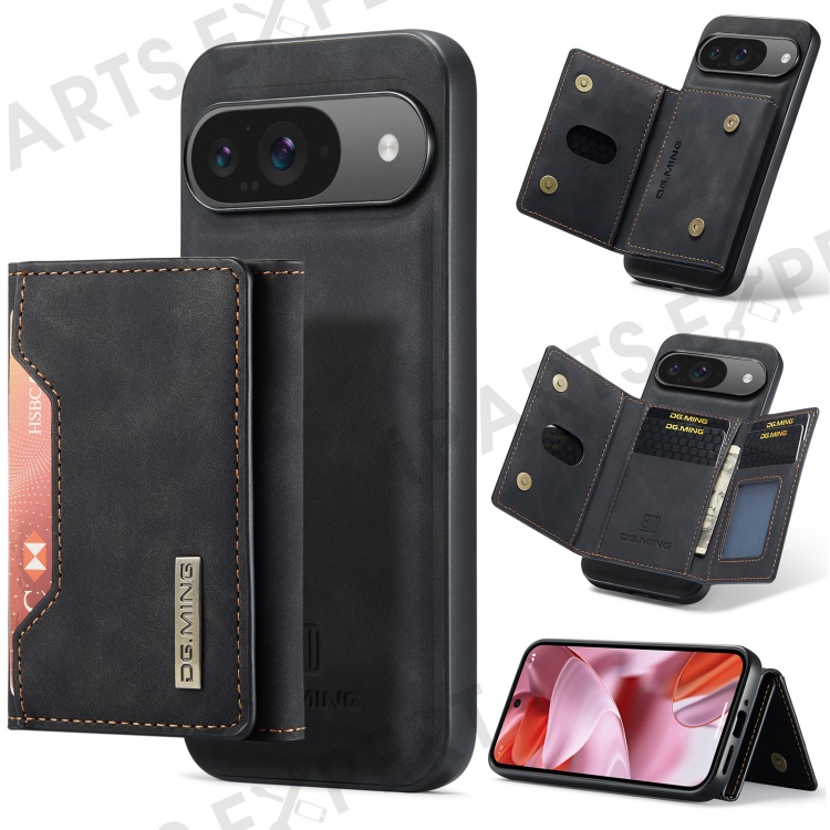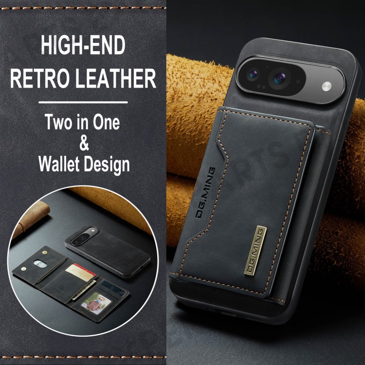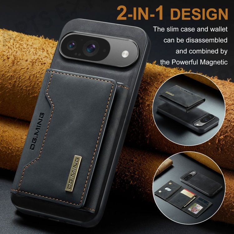 DG.MING M2 Series for Google Pixel 9 Pro / Pixel 9 Case PU+PC+TPU Phone Cover Detachable Wallet - Black