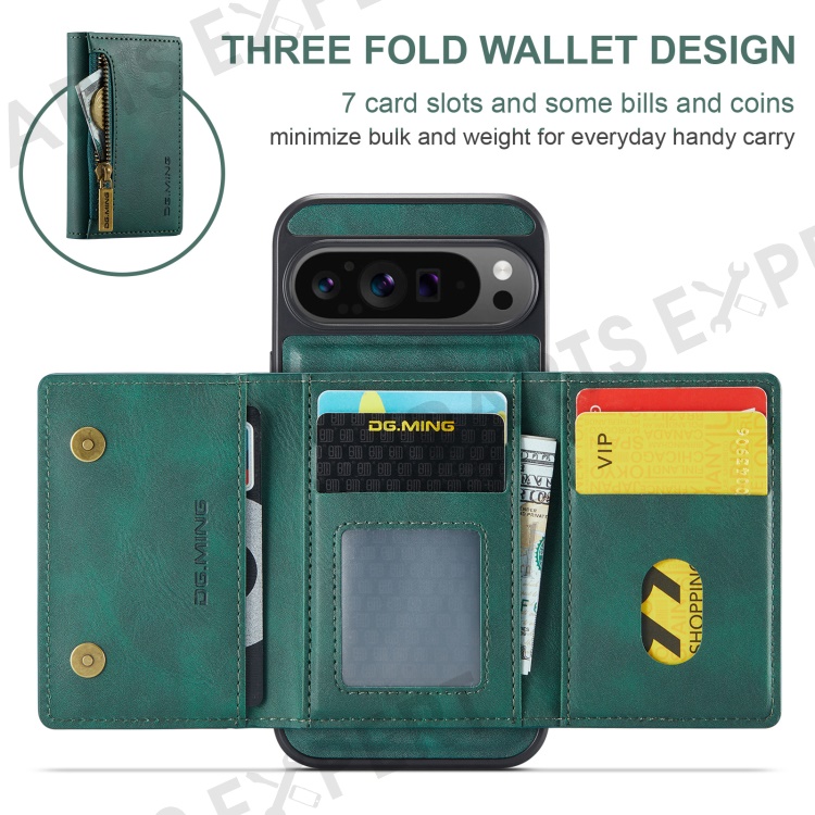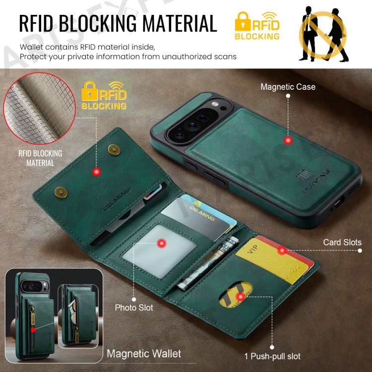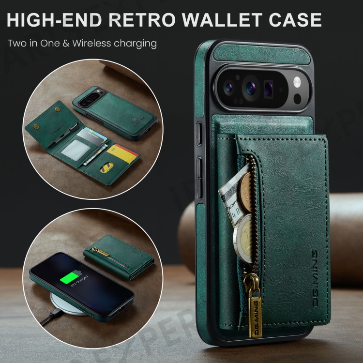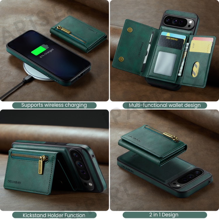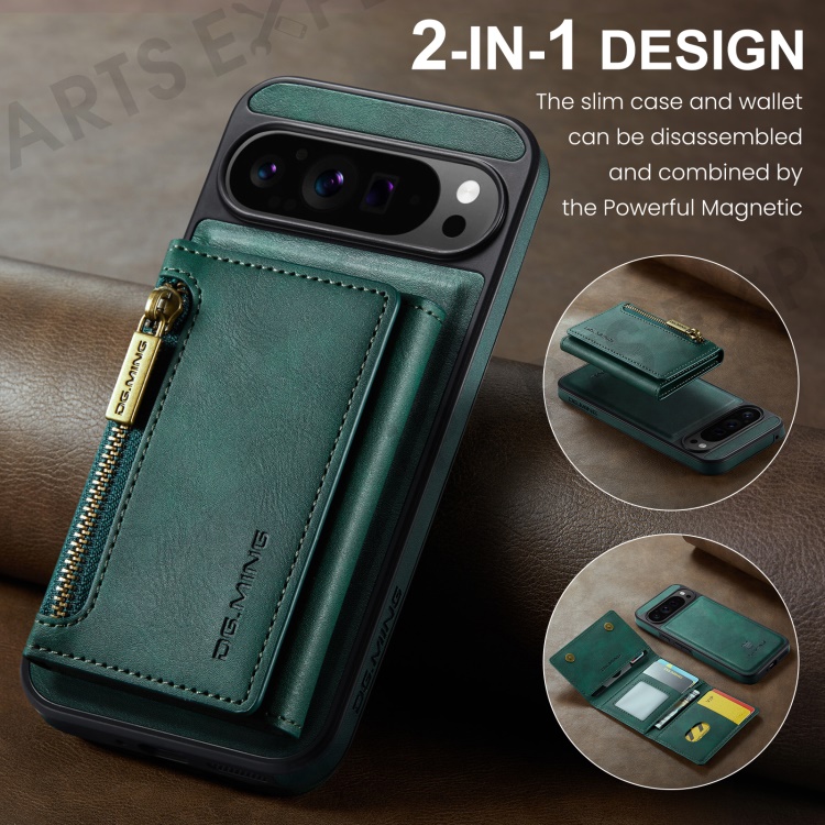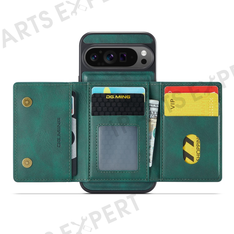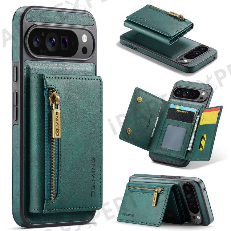 DG.MING M5 Series For Google Pixel 9 Pro XL Case Detachable Magnetic Leather Phone Cover with Card Slots - Green