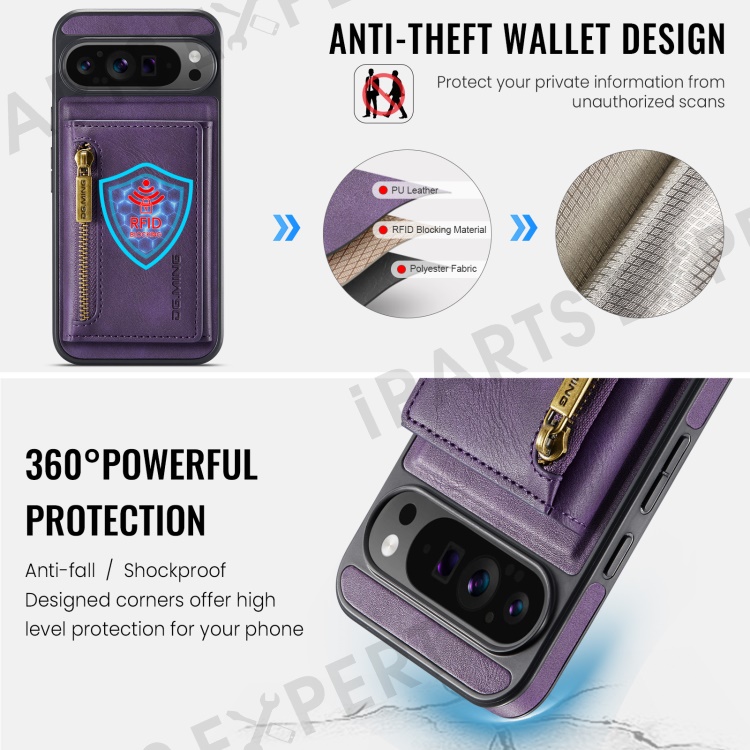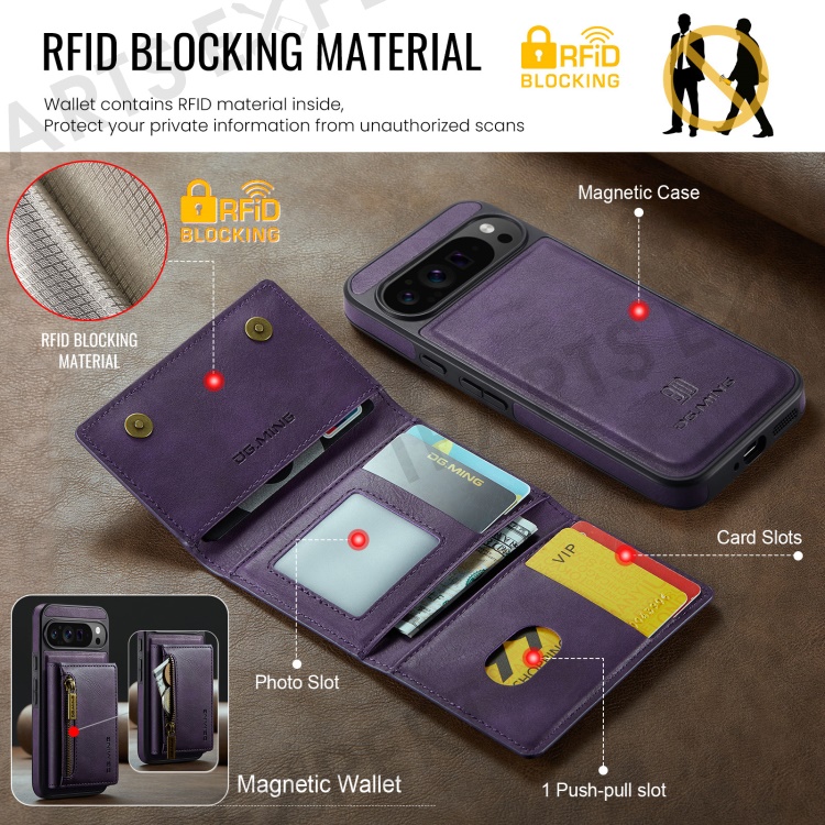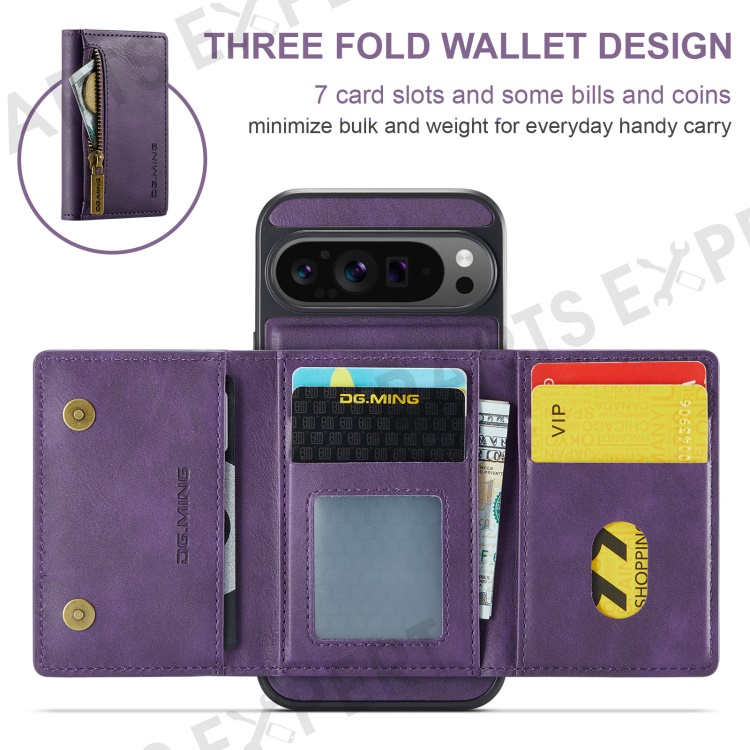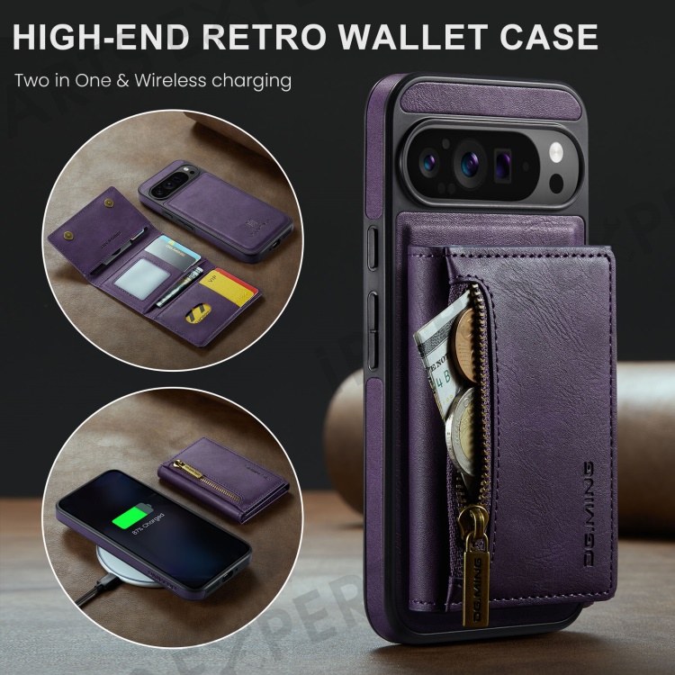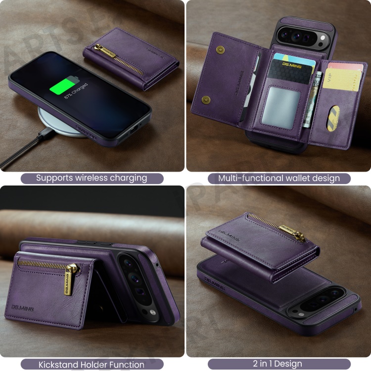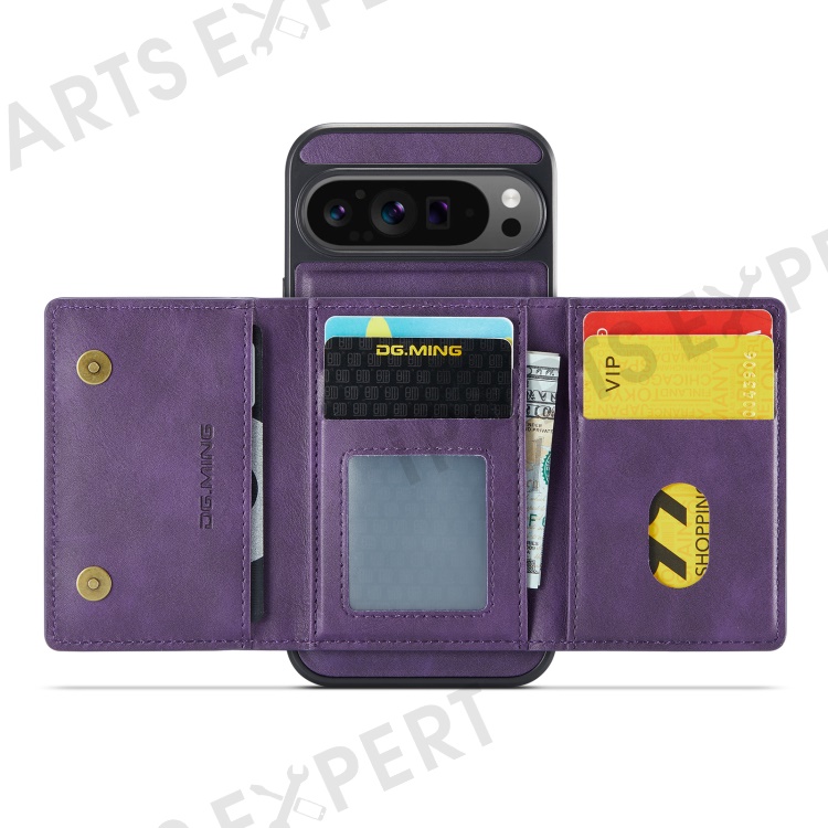 DG.MING M5 Series For Google Pixel 9 Pro XL Case Detachable Magnetic Leather Phone Cover with Card Slots - Purple