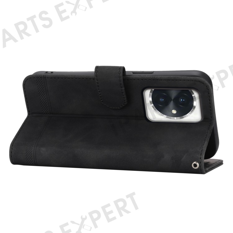 DIERFENG DF-03 for Honor 100 5G Line Texture Leather Phone Case Stand Wallet - Black
