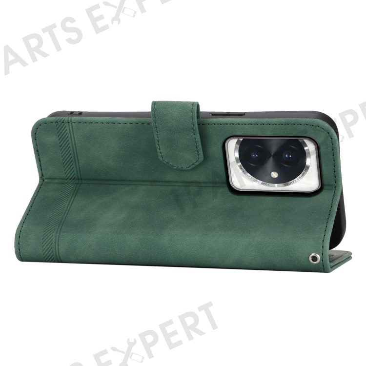 DIERFENG DF-03 for Honor 100 5G Line Texture Leather Phone Case Stand Wallet - Green