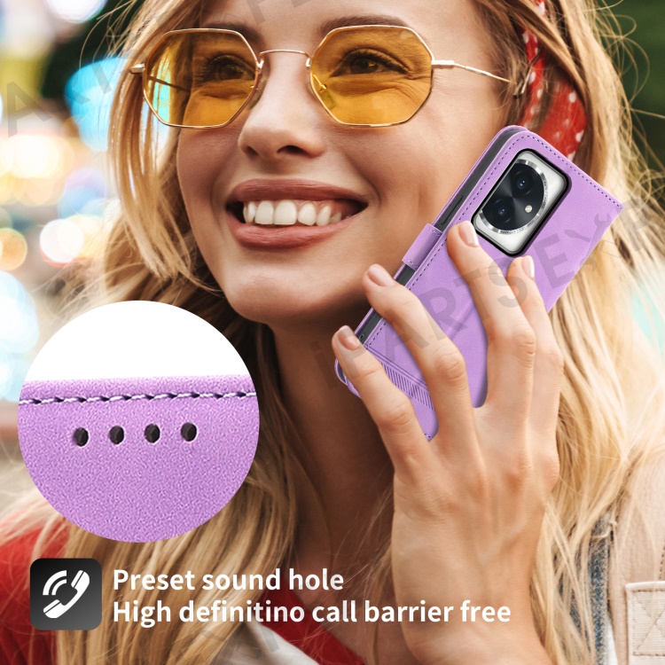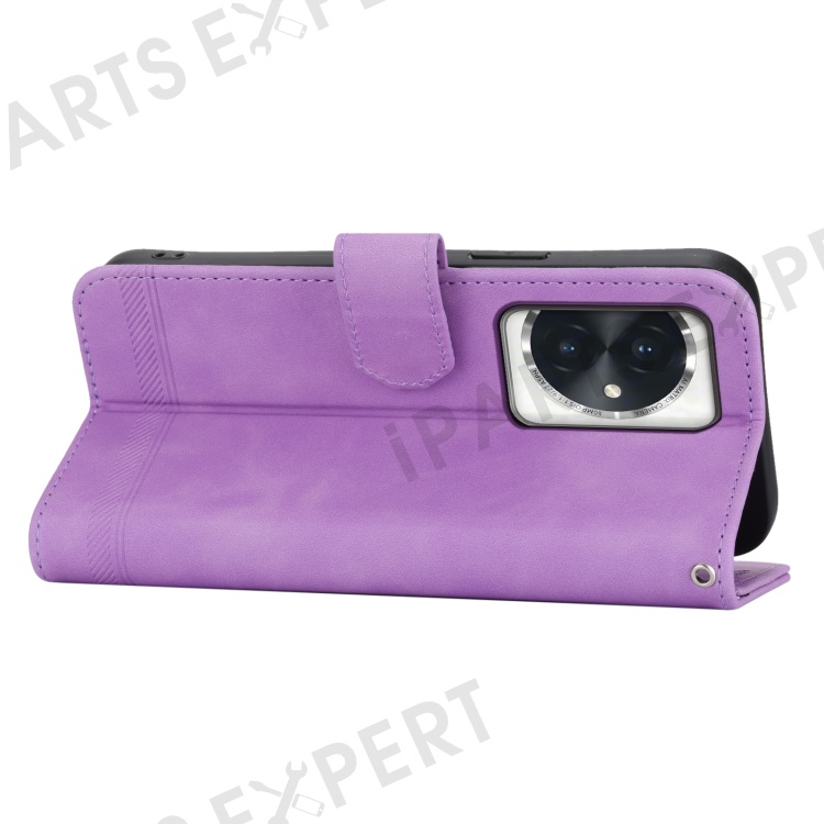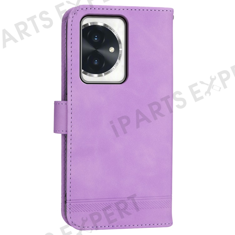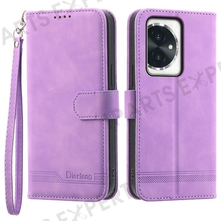DIERFENG DF-03 for Honor 100 5G Line Texture Leather Phone Case Stand Wallet - Purple