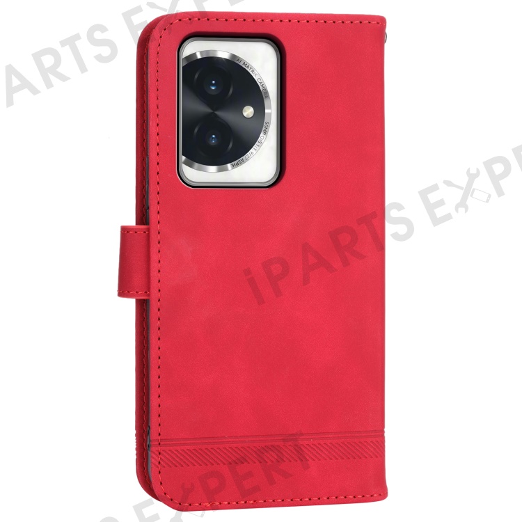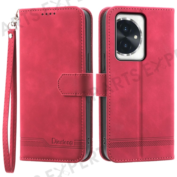 DIERFENG DF-03 for Honor 100 5G Line Texture Leather Phone Case Stand Wallet - Red