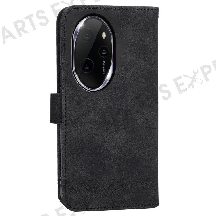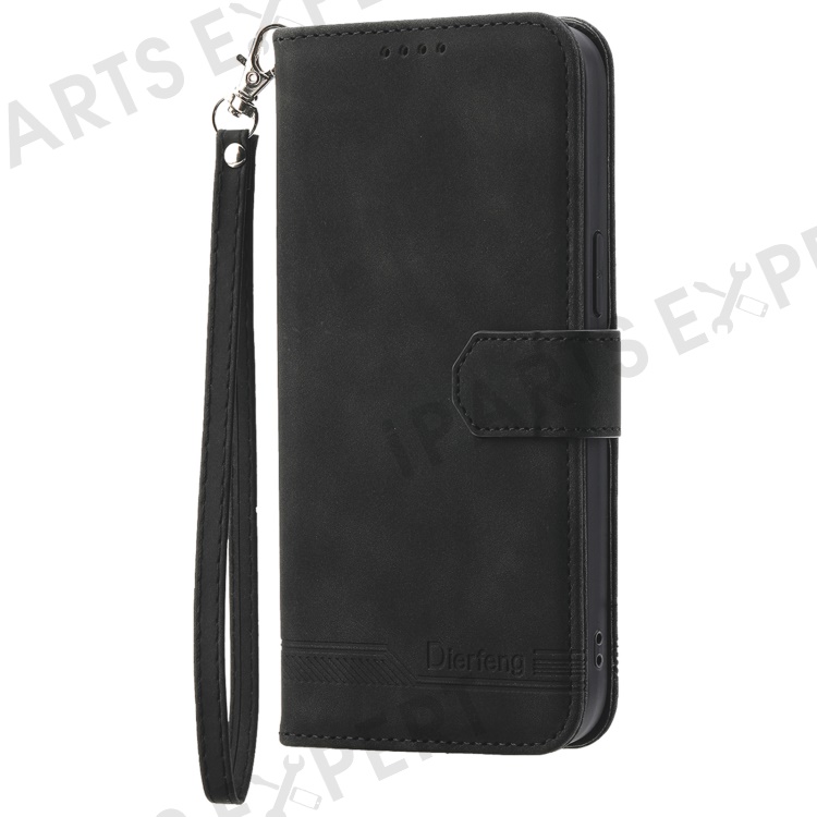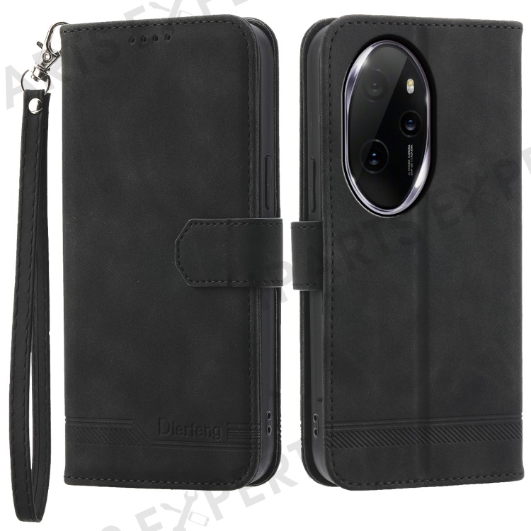 DIERFENG DF-03 for Honor 100 Pro 5G Leather Case Wallet Cover Lines Imprint - Black