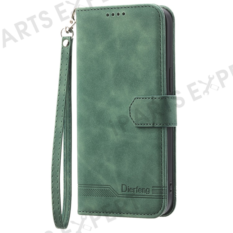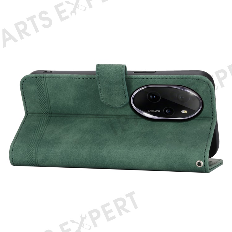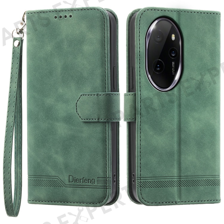 DIERFENG DF-03 for Honor 100 Pro 5G Leather Case Wallet Cover Lines Imprint - Green