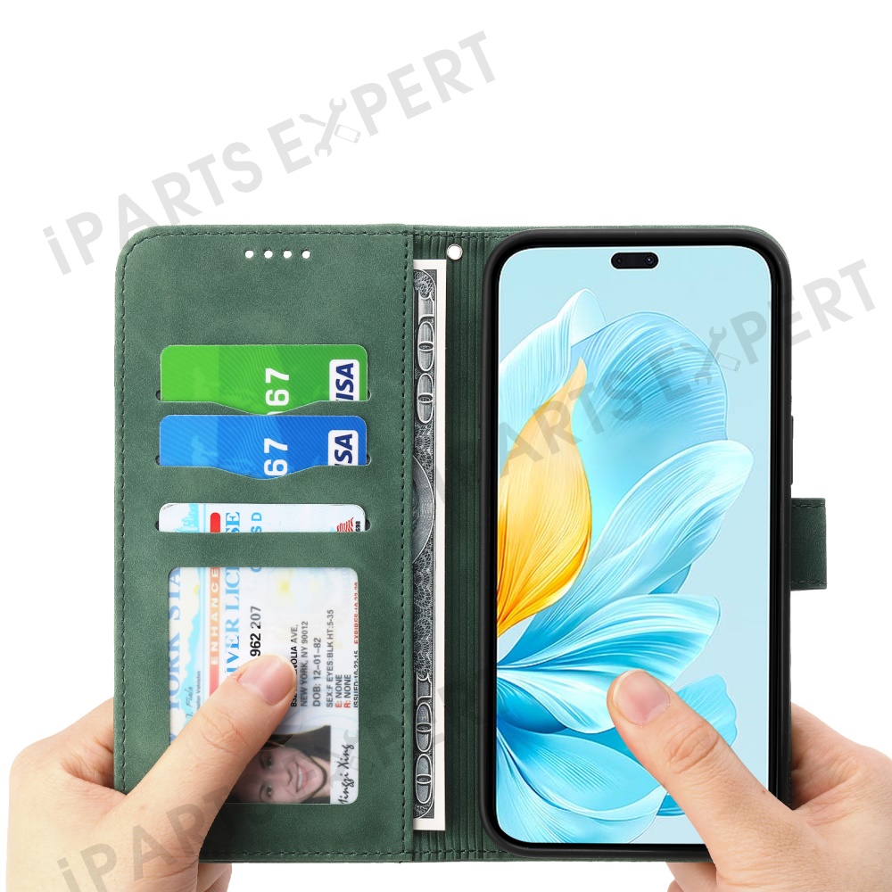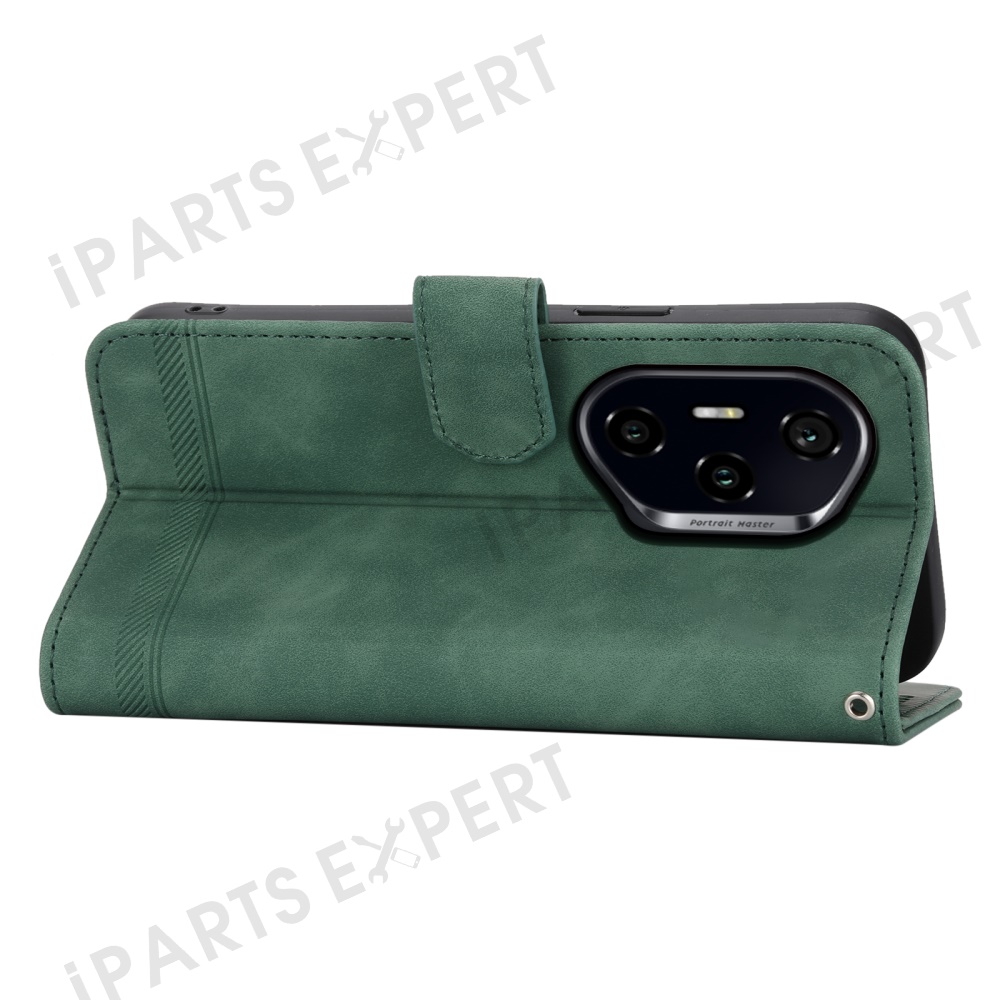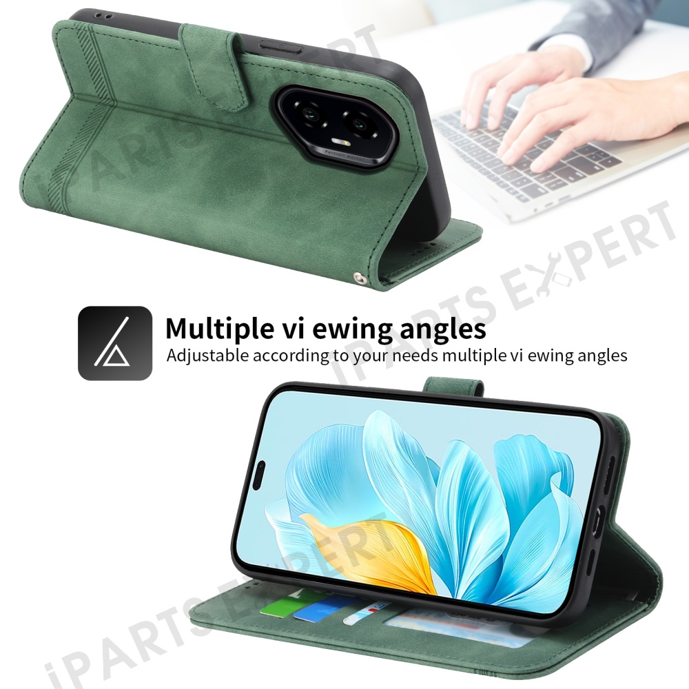 DIERFENG DF-03 For Honor 300 Pro / 300 Ultra Leather Case Lines Imprint Wallet Phone Cover - Green
