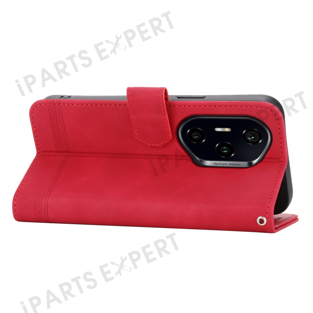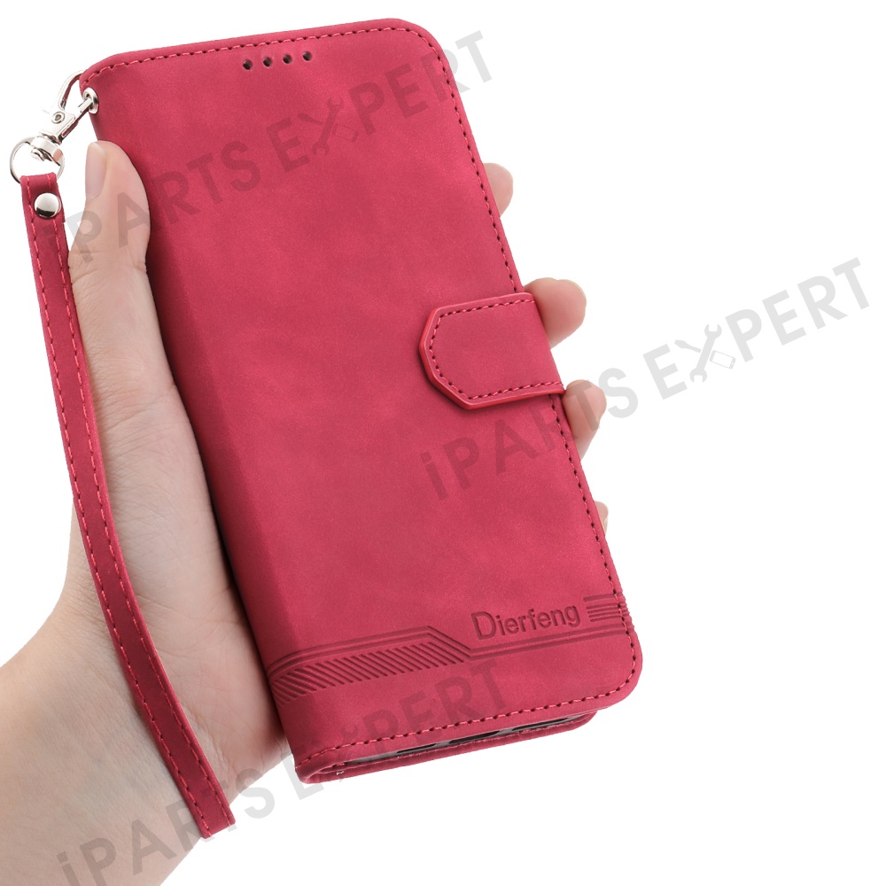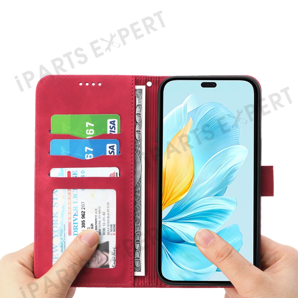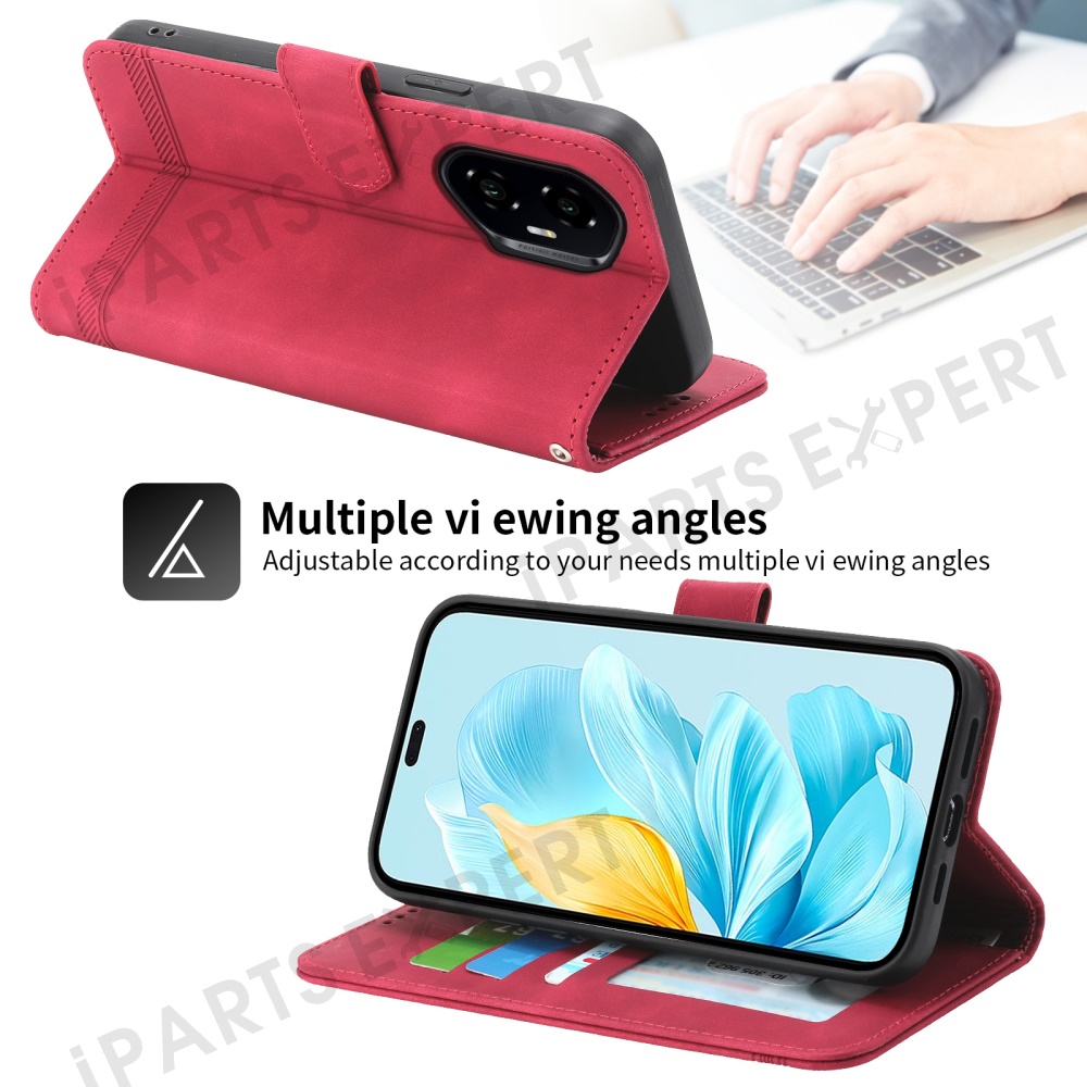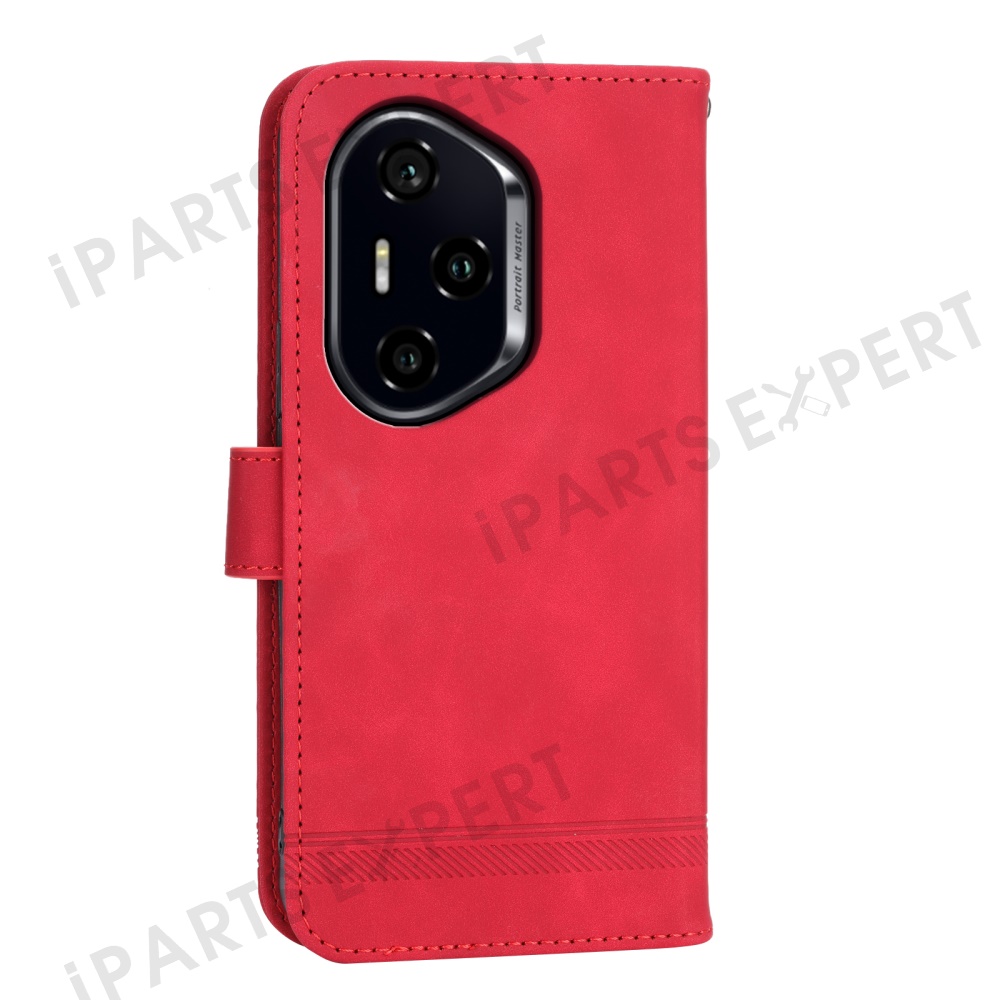 DIERFENG DF-03 For Honor 300 Pro / 300 Ultra Leather Case Lines Imprint Wallet Phone Cover - Red