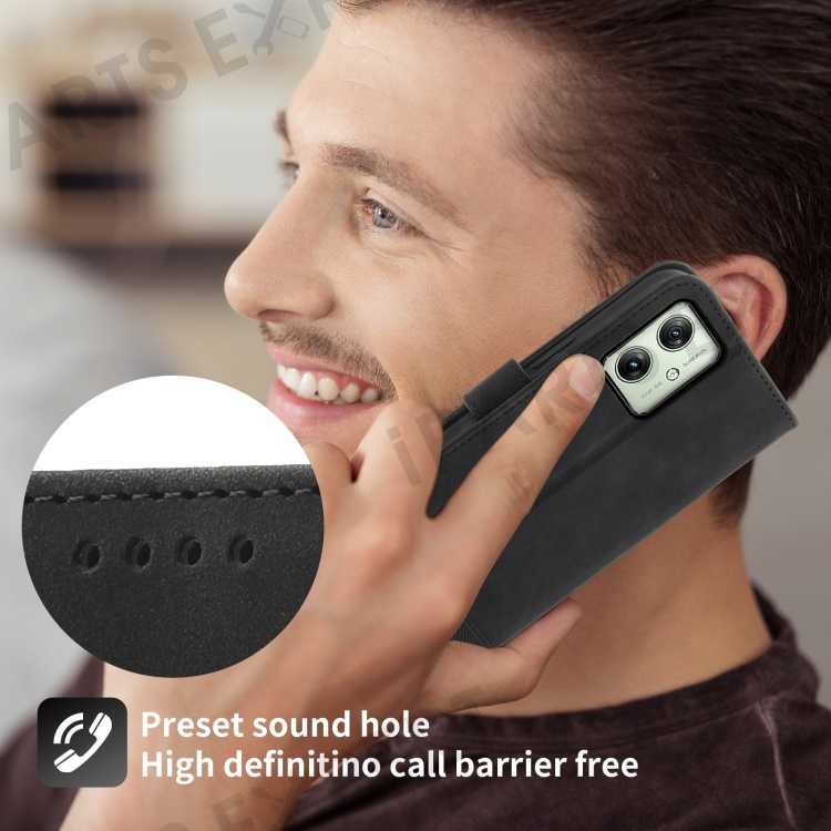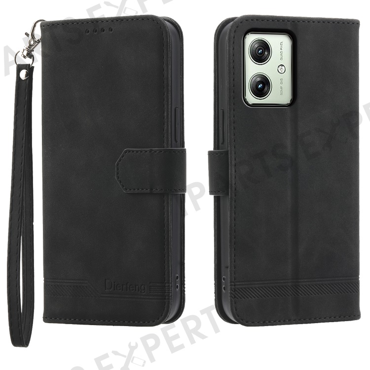 DIERFENG DF-03 For Motorola Moto G54 5G Case Slim-Fit Phone Shell Imprinted PU Leather Wallet Stand Cover - Black