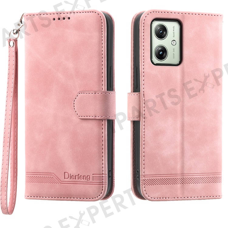 DIERFENG DF-03 For Motorola Moto G54 5G Case Slim-Fit Phone Shell Imprinted PU Leather Wallet Stand Cover - Pink