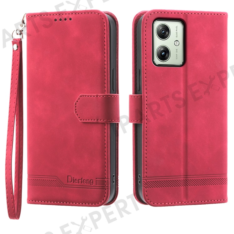 DIERFENG DF-03 For Motorola Moto G54 5G Case Slim-Fit Phone Shell Imprinted PU Leather Wallet Stand Cover - Red