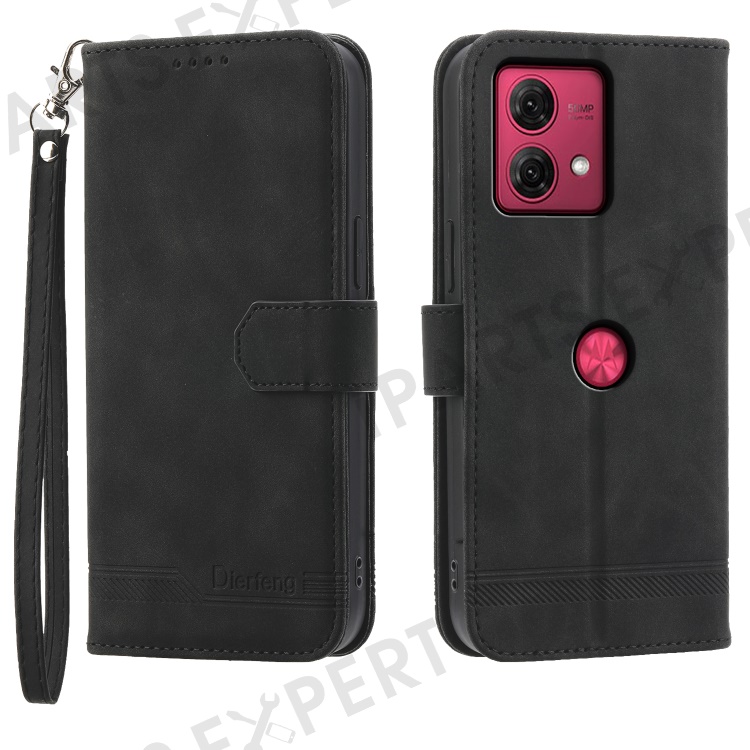 DIERFENG DF-03 For Motorola Moto G84 5G Case PU Leather Flip Phone Stand Cover Wallet - Black