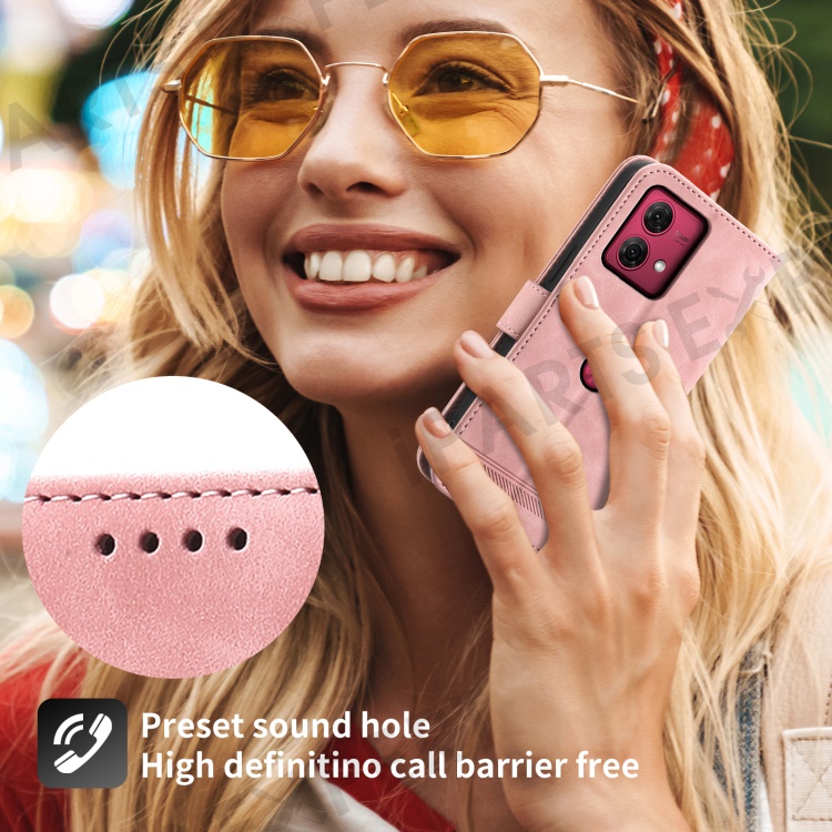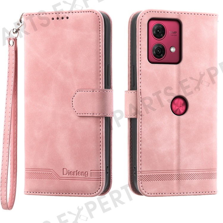 DIERFENG DF-03 For Motorola Moto G84 5G Case PU Leather Flip Phone Stand Cover Wallet - Pink