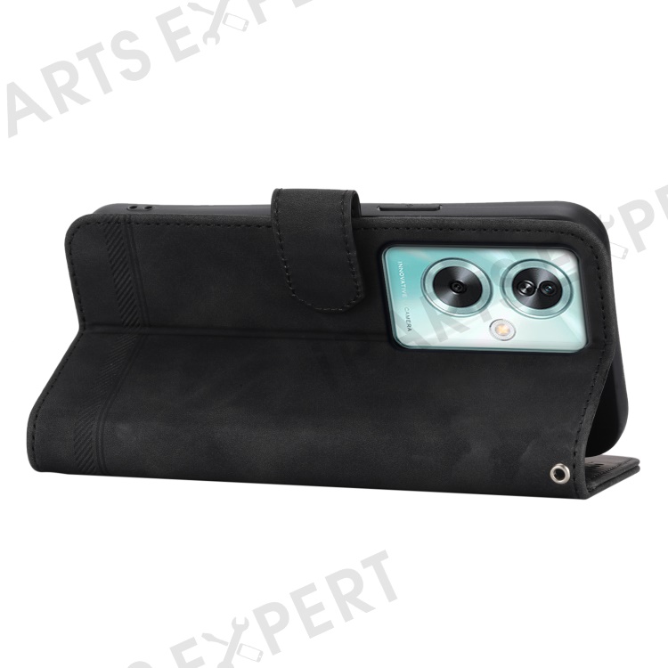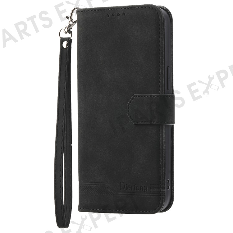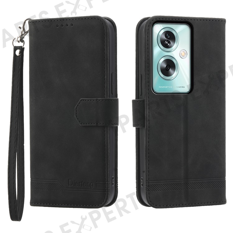 DIERFENG DF-03 For Oppo A79 5G / A2 5G Cover Lines Imprinted Flip Wallet Phone Stand Case - Black