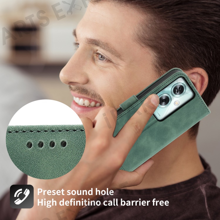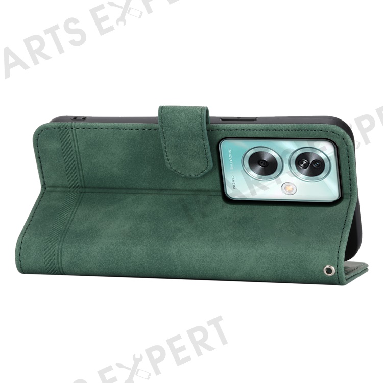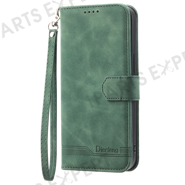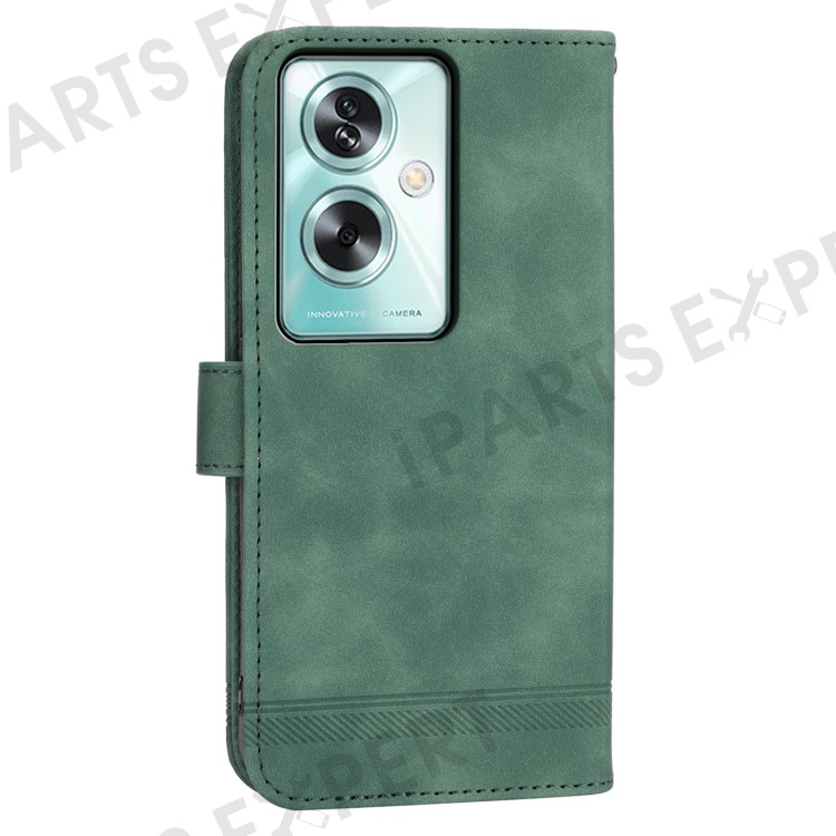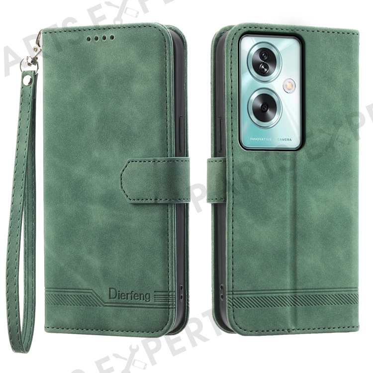 DIERFENG DF-03 For Oppo A79 5G / A2 5G Cover Lines Imprinted Flip Wallet Phone Stand Case - Green