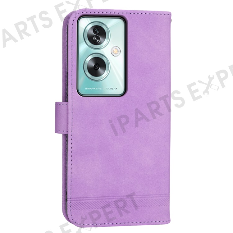 DIERFENG DF-03 For Oppo A79 5G / A2 5G Cover Lines Imprinted Flip Wallet Phone Stand Case - Purple