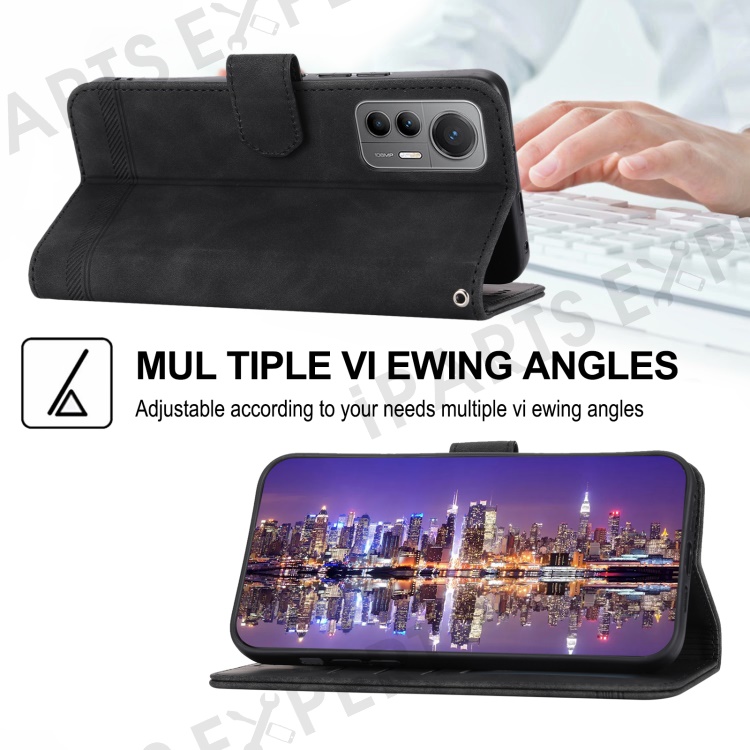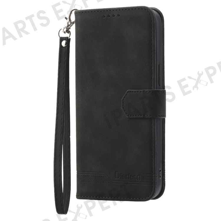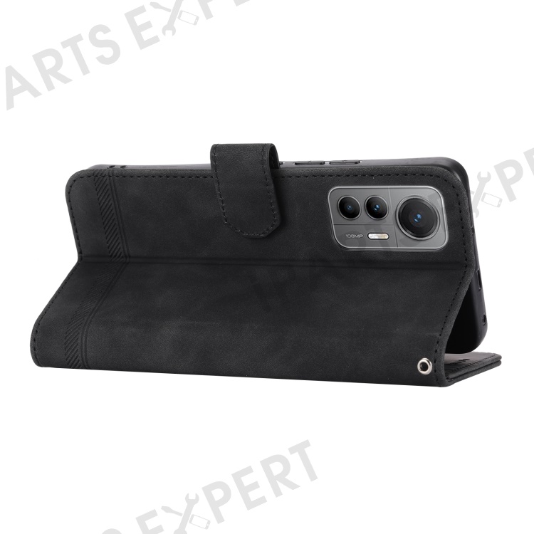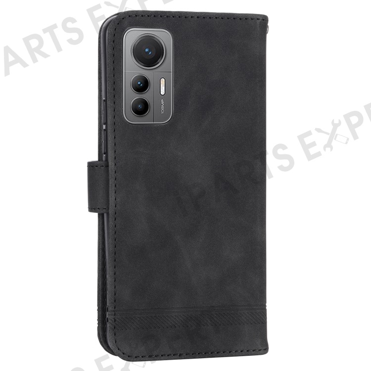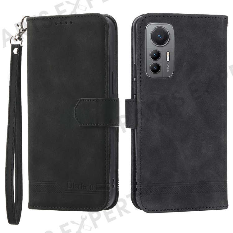 DIERFENG DF-03 For Xiaomi 12 Lite 5G Leather Phone Case Wallet Lines Imprinted Pattern Phone Stand Cover - Black