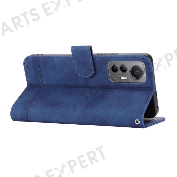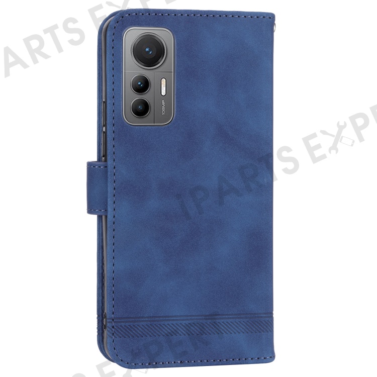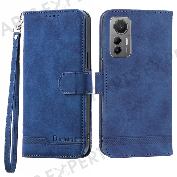 DIERFENG DF-03 For Xiaomi 12 Lite 5G Leather Phone Case Wallet Lines Imprinted Pattern Phone Stand Cover - Blue