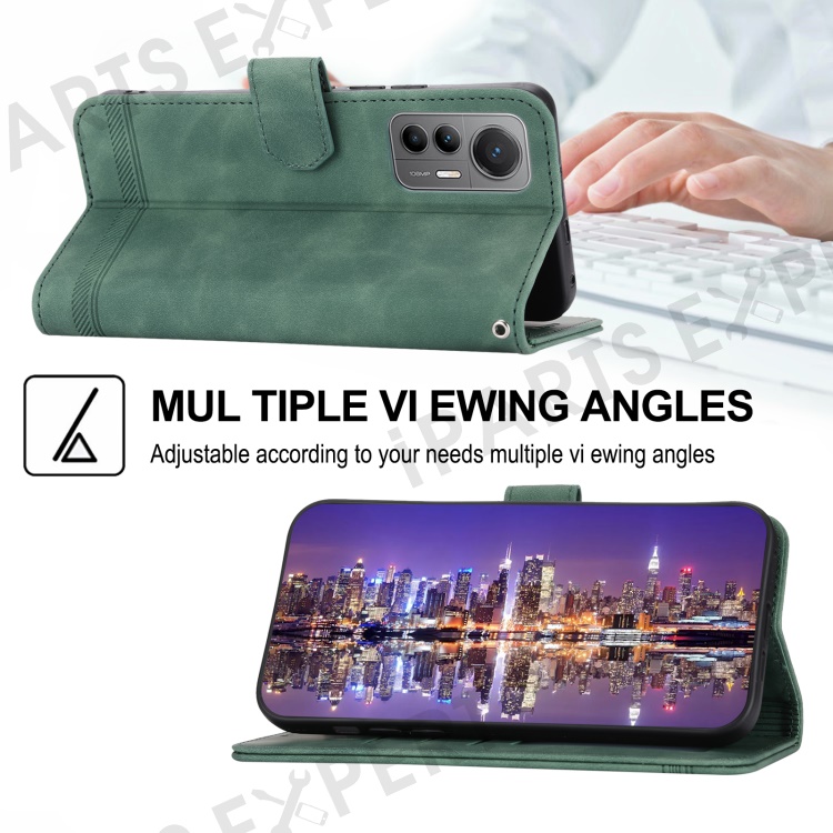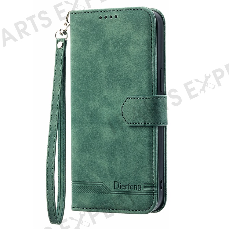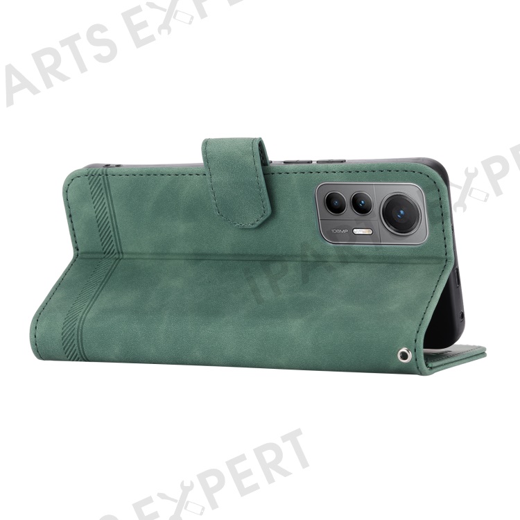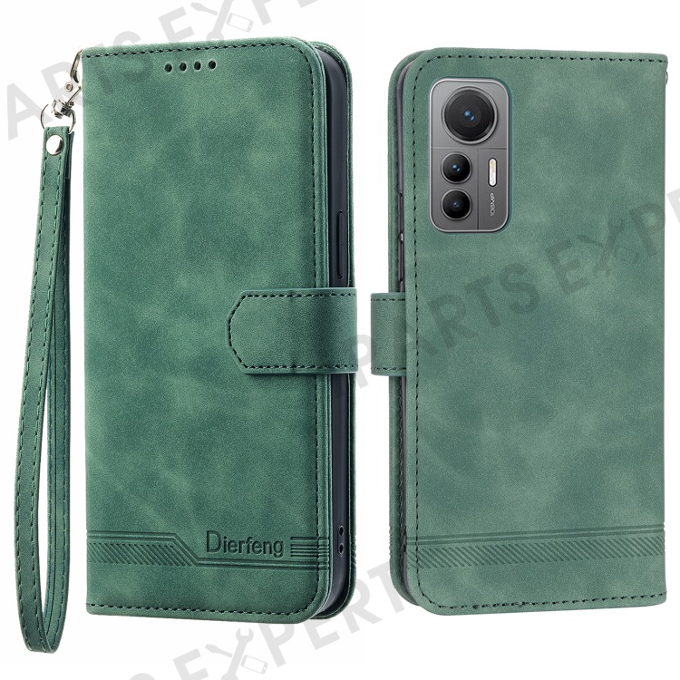 DIERFENG DF-03 For Xiaomi 12 Lite 5G Leather Phone Case Wallet Lines Imprinted Pattern Phone Stand Cover - Green