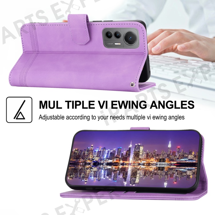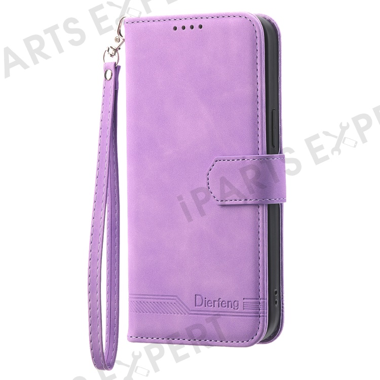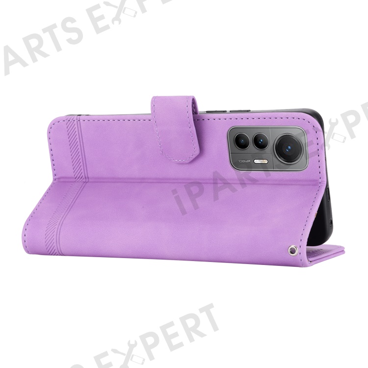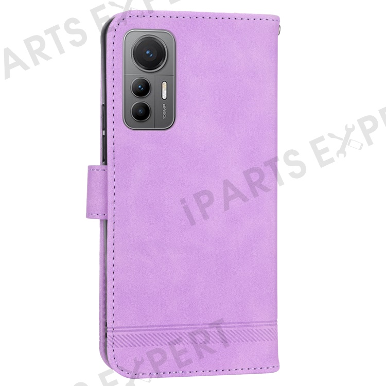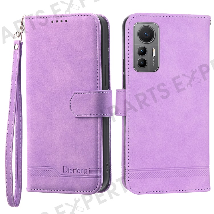 DIERFENG DF-03 For Xiaomi 12 Lite 5G Leather Phone Case Wallet Lines Imprinted Pattern Phone Stand Cover - Purple