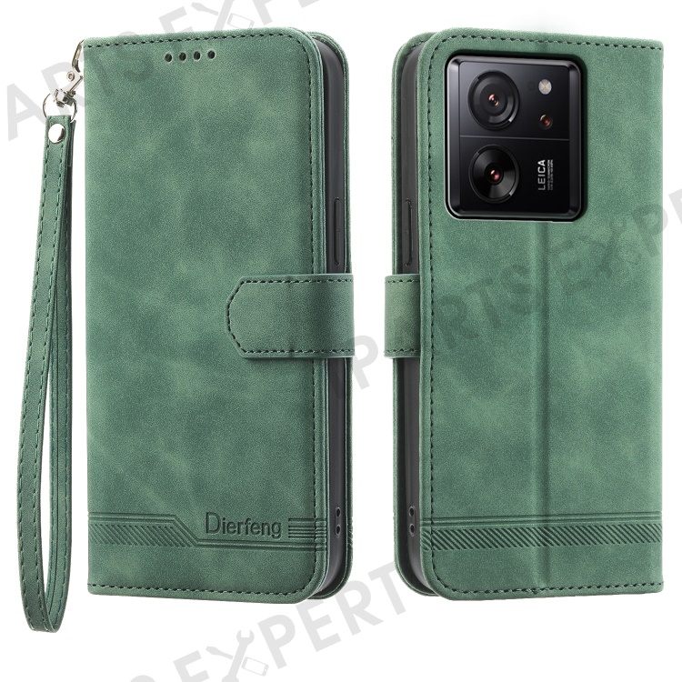 DIERFENG DF-03 For Xiaomi 13T / 13T Pro / Redmi K60 Ultra Case Imprinted Wallet Phone Shell Stand PU Leather Protector - Green
