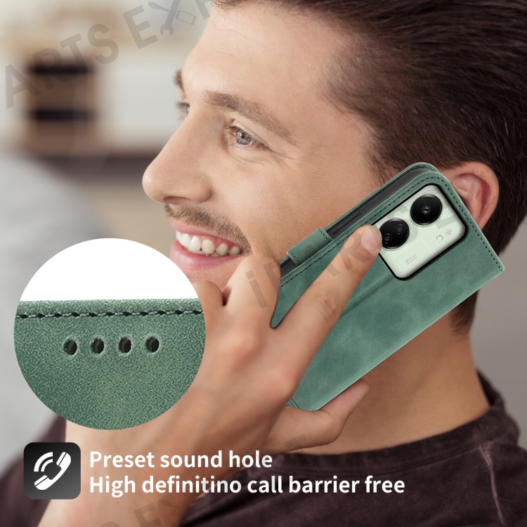 DIERFENG DF-03 For Xiaomi Redmi 13C 4G / 13C 5G / Poco C65 4G / Poco M6 5G / 13R 5G Case PU Leather Flip Card Holder Smartphone Cover - Green