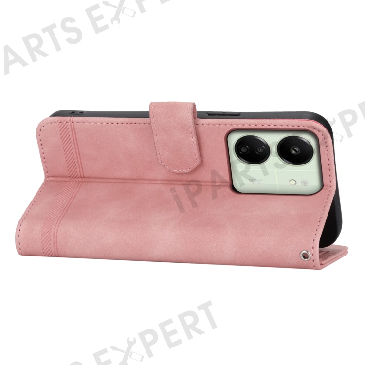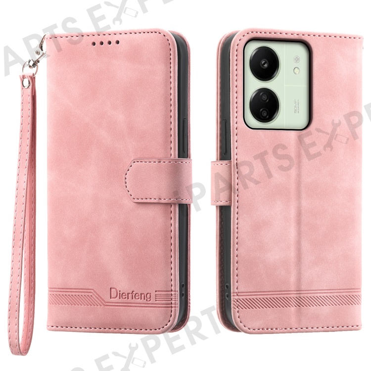DIERFENG DF-03 For Xiaomi Redmi 13C 4G / 13C 5G / Poco C65 4G / Poco M6 5G / 13R 5G Case PU Leather Flip Card Holder Smartphone Cover - Pink