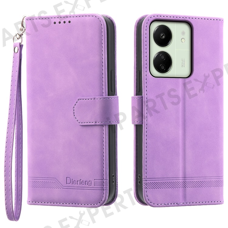 DIERFENG DF-03 For Xiaomi Redmi 13C 4G / 13C 5G / Poco C65 4G / Poco M6 5G / 13R 5G Case PU Leather Flip Card Holder Smartphone Cover - Purple