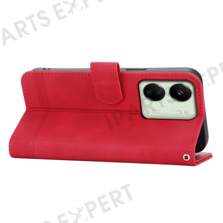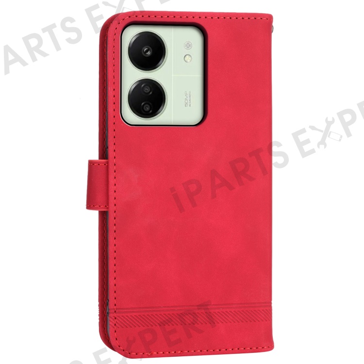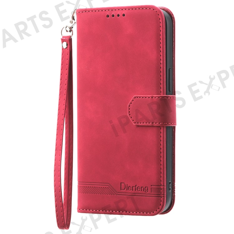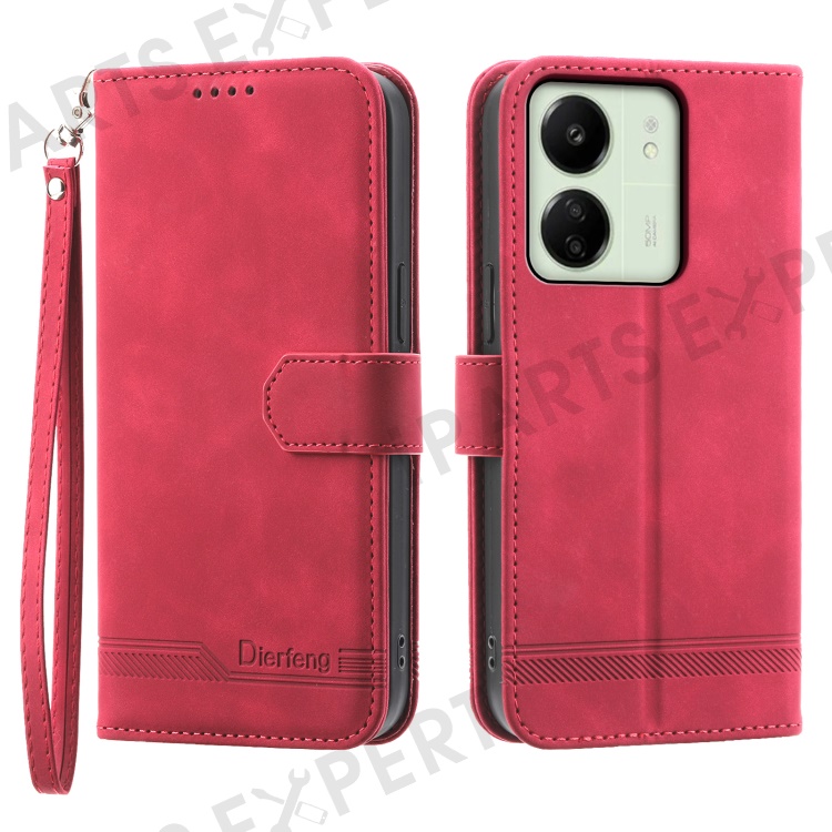 DIERFENG DF-03 For Xiaomi Redmi 13C 4G / 13C 5G / Poco C65 4G / Poco M6 5G / 13R 5G Case PU Leather Flip Card Holder Smartphone Cover - Red