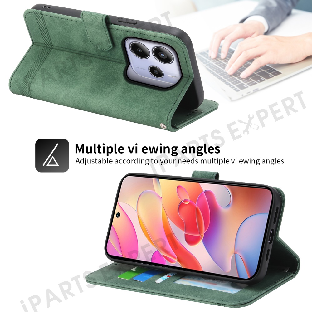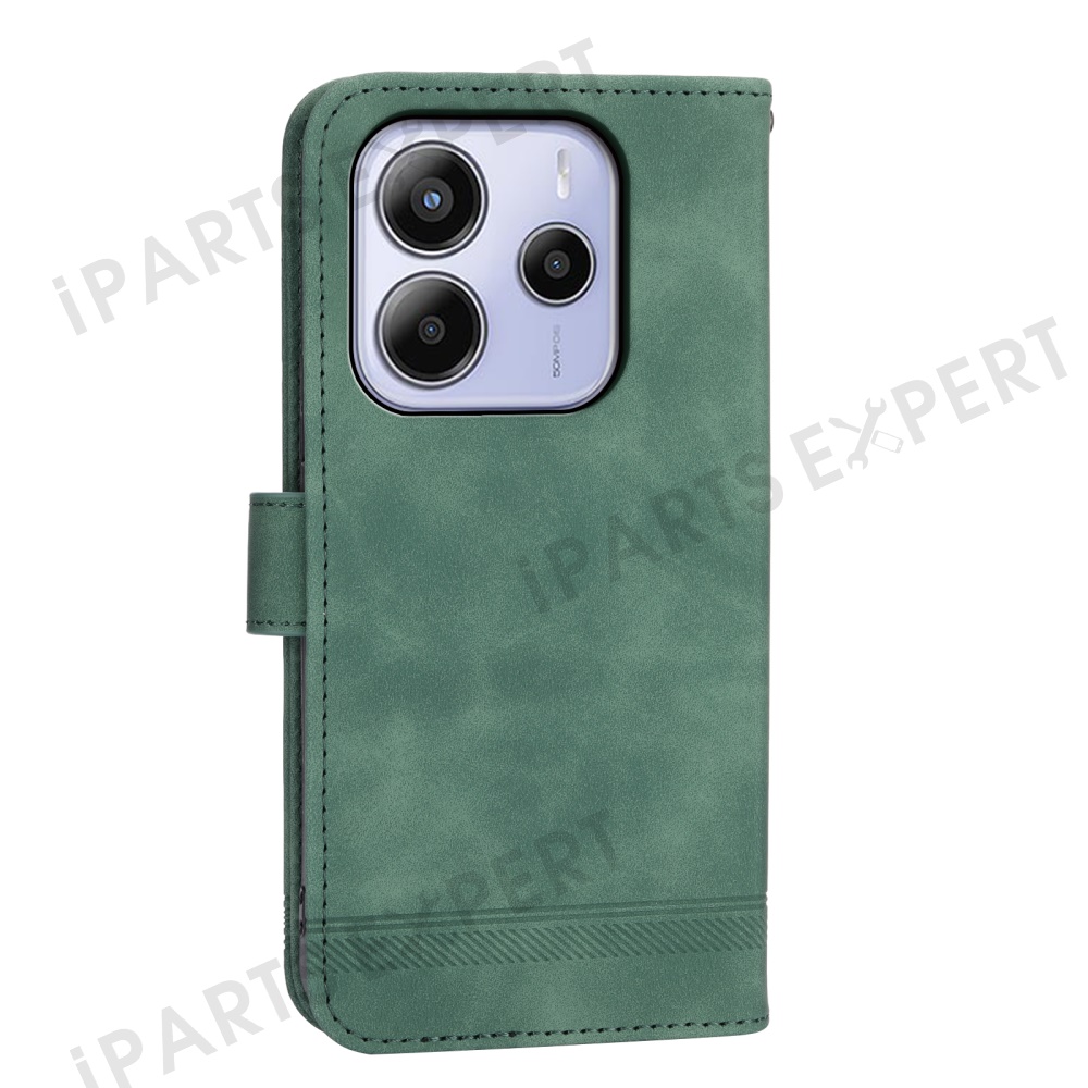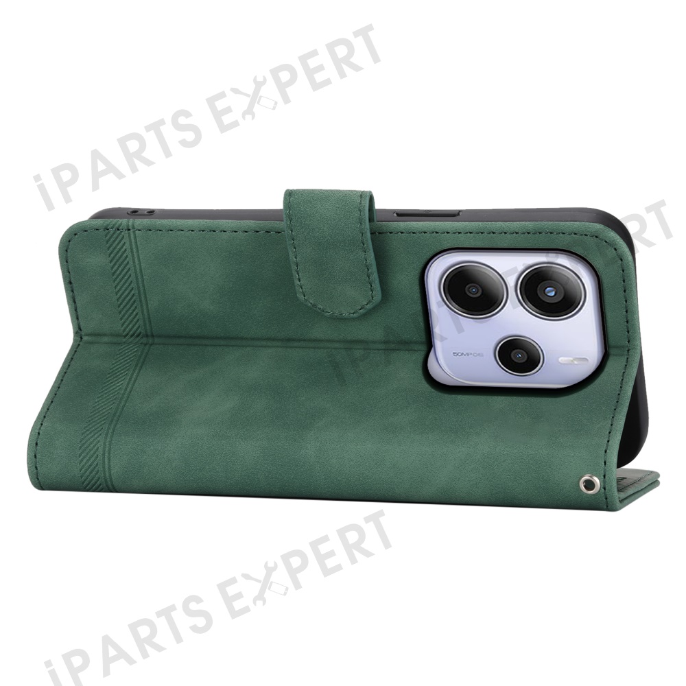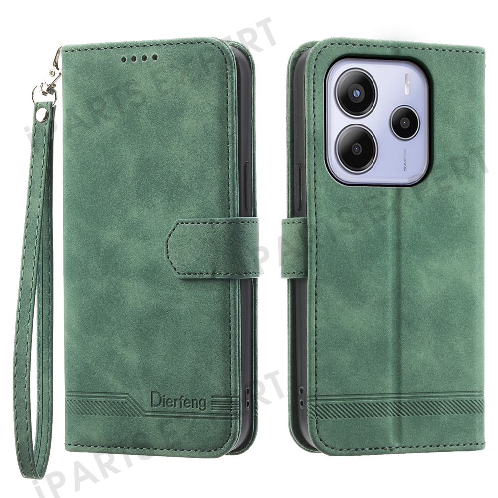 DIERFENG DF-03 For Xiaomi Redmi Note 14 4G (163.25mm) Leather Case Lines Imprint Wallet Phone Cover - Green