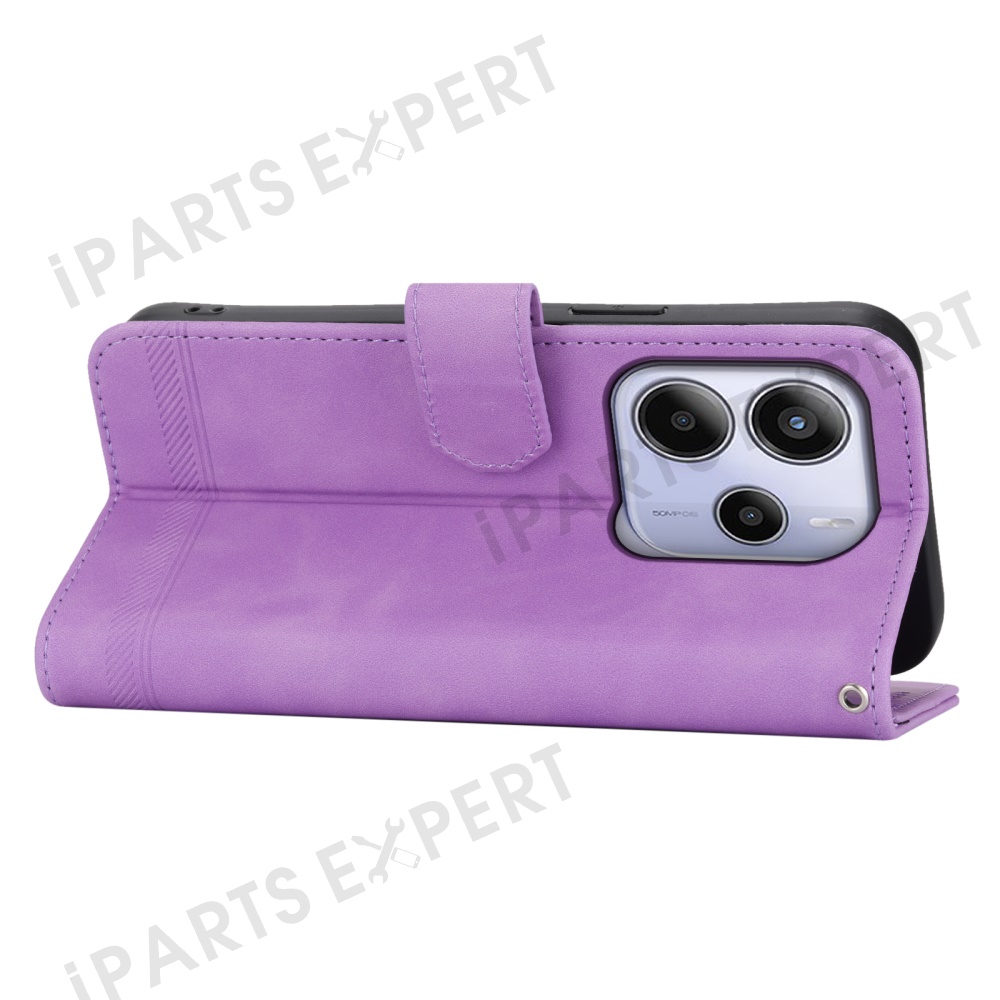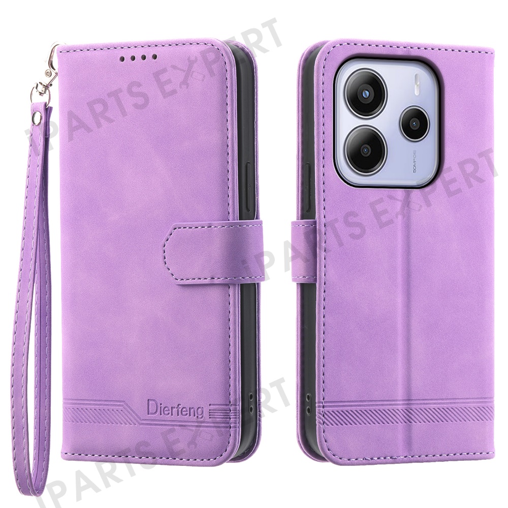 DIERFENG DF-03 For Xiaomi Redmi Note 14 4G (163.25mm) Leather Case Lines Imprint Wallet Phone Cover - Purple